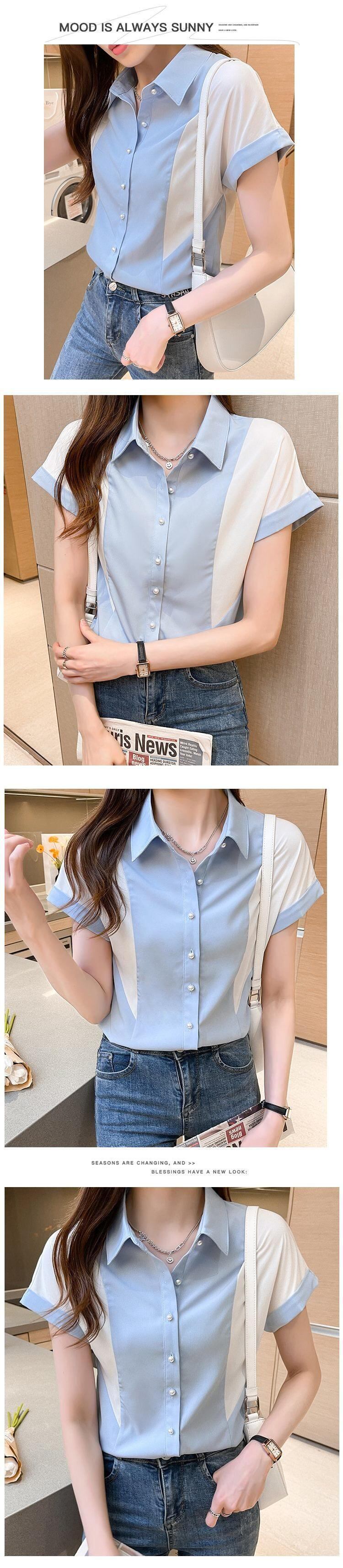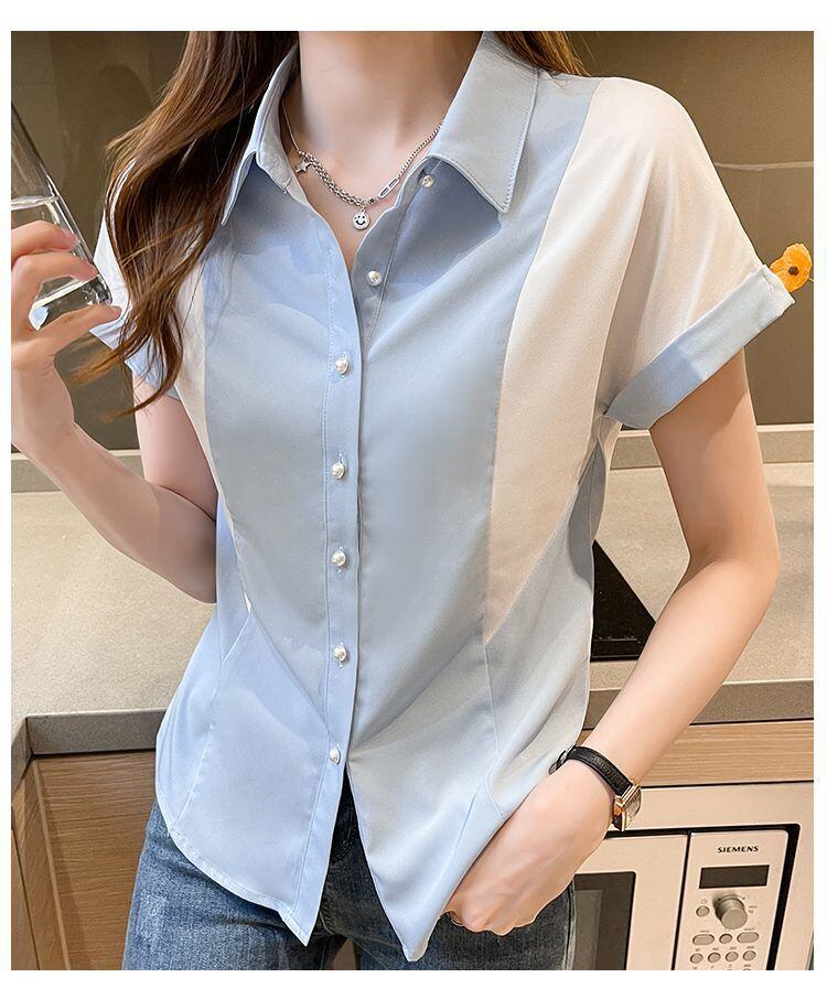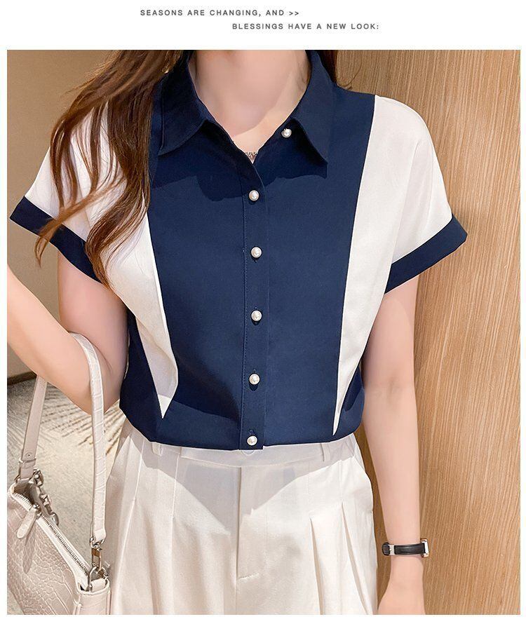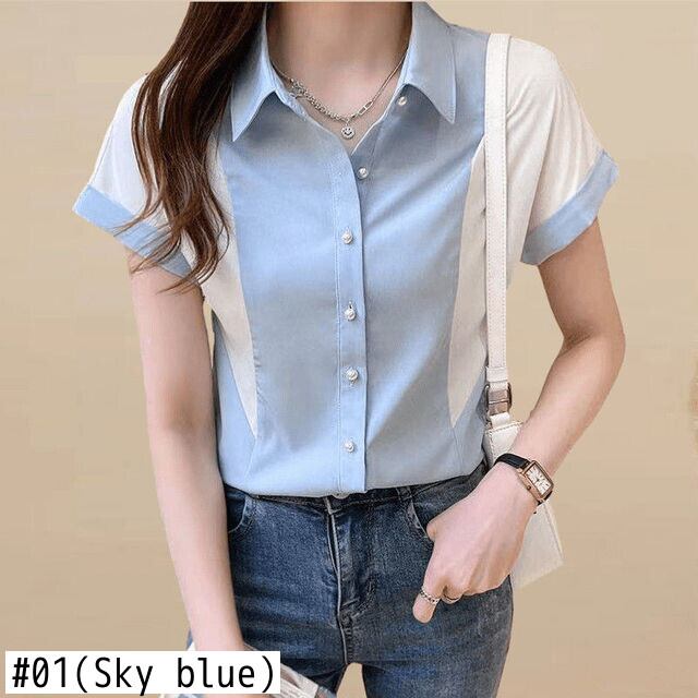 送料無料 ラペルスプライシングラグランスリーブプラスサイズシフォンブラウス 2022 夏通勤トップスルーズシャツ 大きめサイズ サマー 夏物 AE1288776650430002375