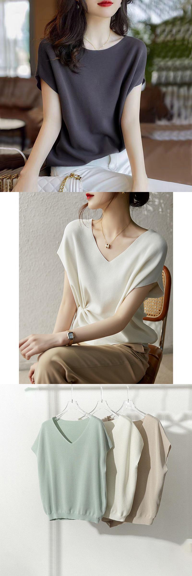 送料無料 V ネックソリッドカラールーズブラウス女性の 2023 夏プルオーバートップス半袖通勤シャツ ショート ハーフスリーブ サマー 夏物 Vネック AE1288776641930513580