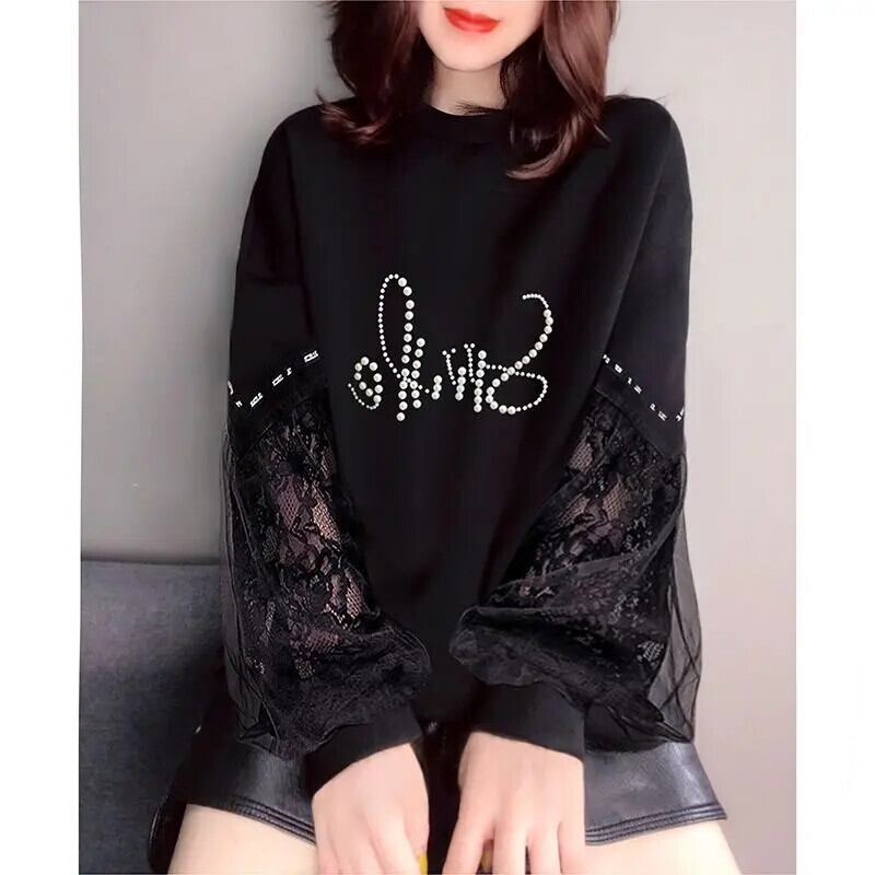 送料無料 O ネックビーズスプライシングガーゼレースブラウス女性の 2024 春夏ルーズオールマッチトップスシャツ スプリング 春物 サマー 夏物 Oネック AE1288776669220958187