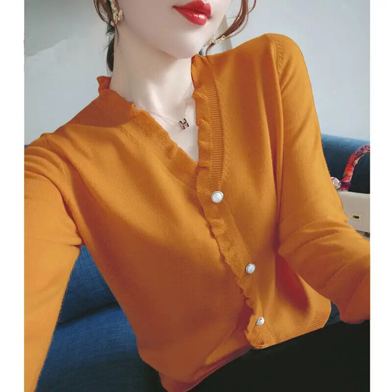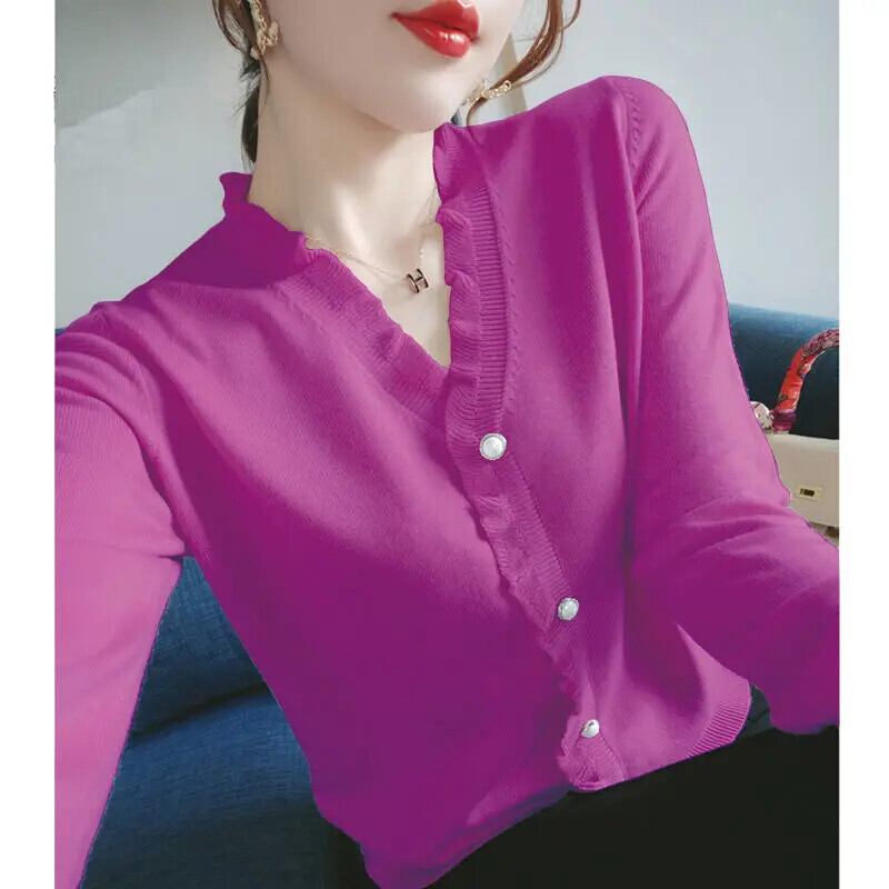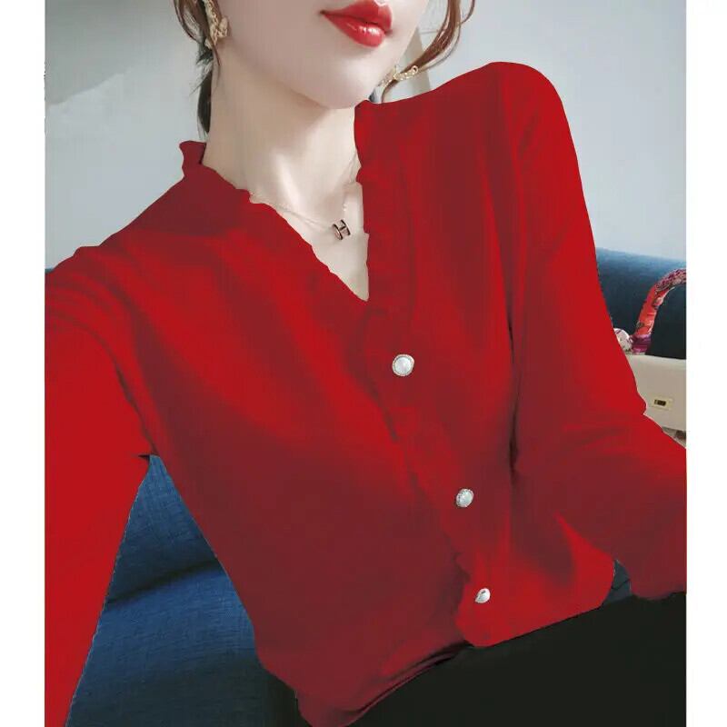 送料無料 V ネックソリッドカラーボタンスプライシング 2022 秋特大シャツルーズトップス通勤女性のブラウス オータム 秋物 Vネック AE1288776654984528752