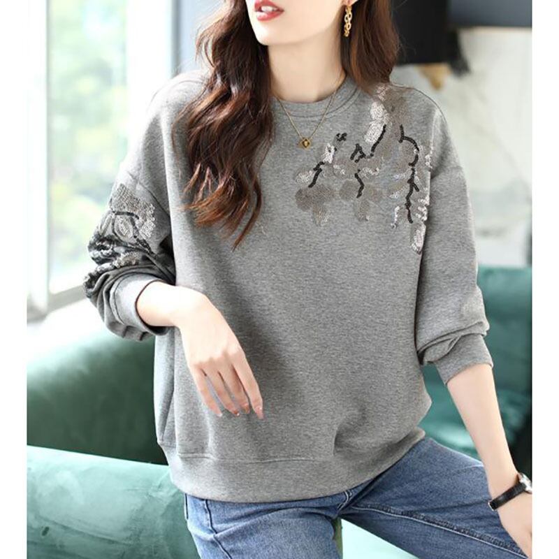 送料無料 O ネックスプライシングスパンコールブラウス女性の 2023 秋冬ルーズオールマッチプルオーバー通勤シャツ オータム 秋物 ウィンター 冬物 Oネック AE1288776647005959453