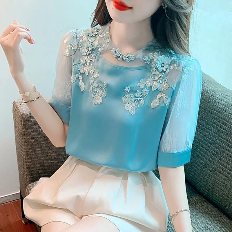 送料無料 ガーゼ刺繍スパンコールビーズブラウスレディース 2023 春プルオーバールーズスイートシャツ 大人ガーリー スウィート キュート カジュアル スプリング 春物 AE1288776622215597000