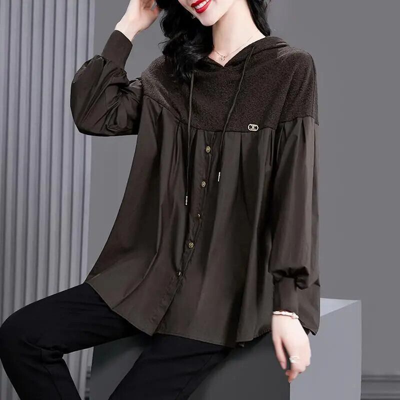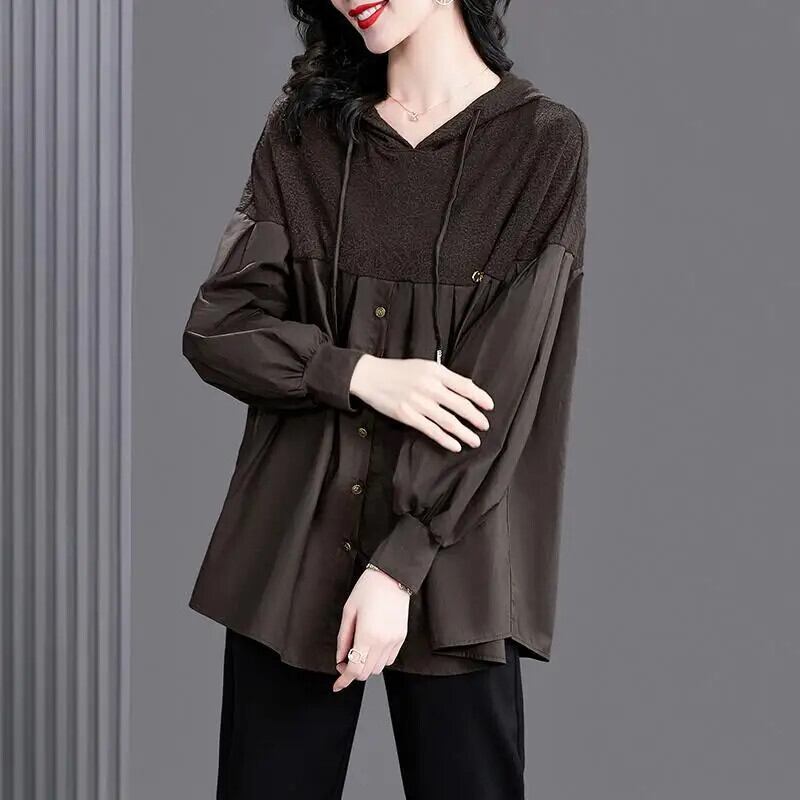 送料無料 フード付きレースアップ不規則なランタンスリーブブラウス女性 2023 秋冬特大トップスシャツ オータム 秋物 ウィンター 冬物 AE1288776681187464519
