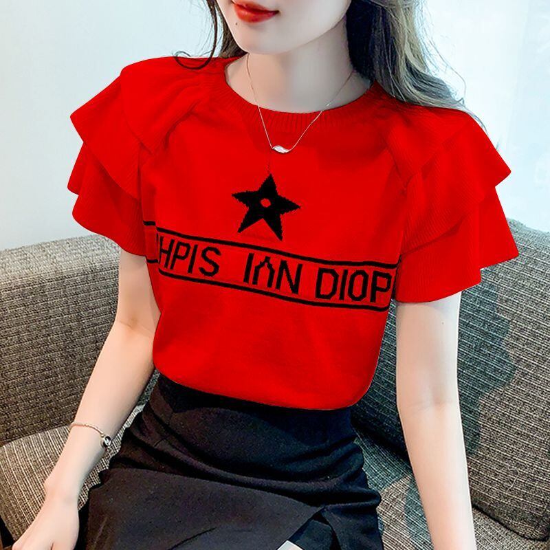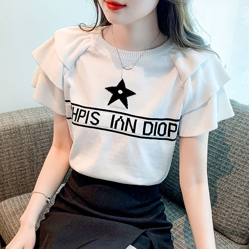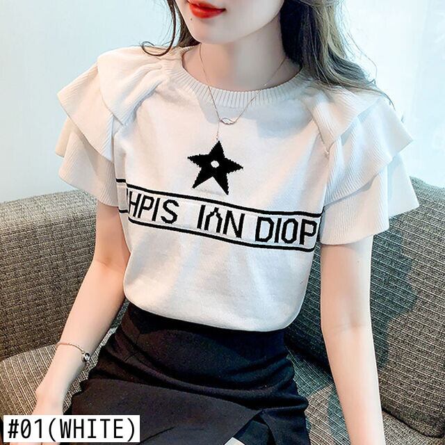 送料無料 甘い刺繍レターバタフライスリーブブラウス春夏ルーズニットトップスオールマッチシャツ 大人ガーリー スウィート キュート カジュアル スプリング 春物 サマー 夏物 AE1288776637582879112