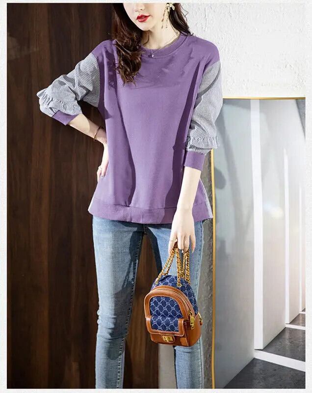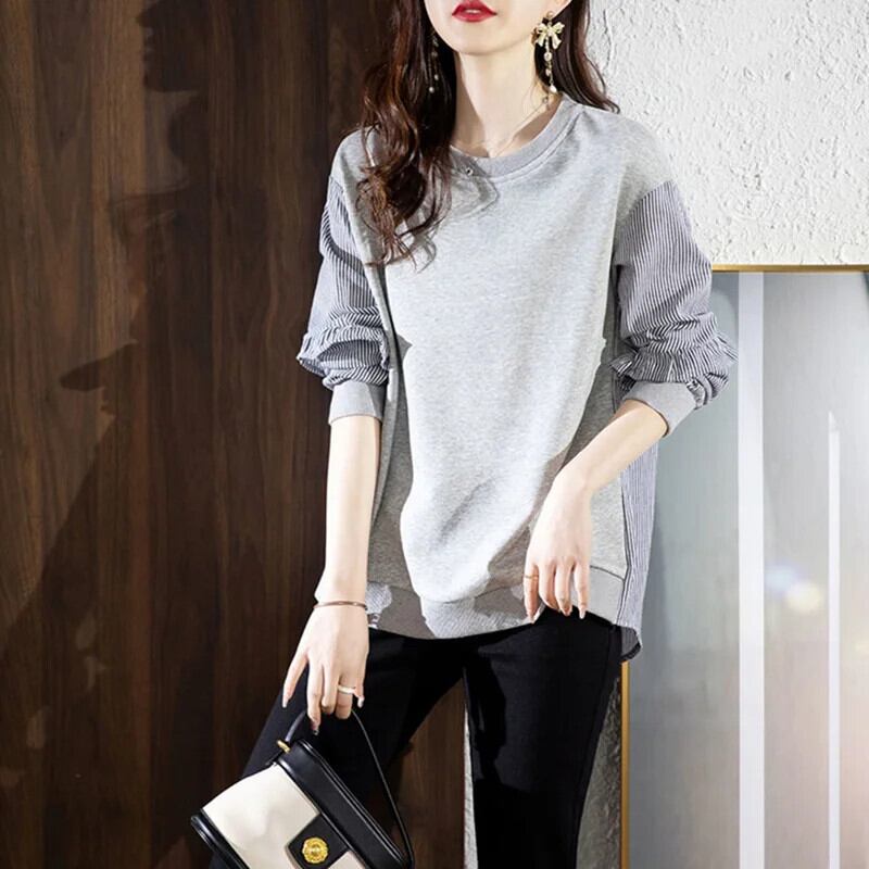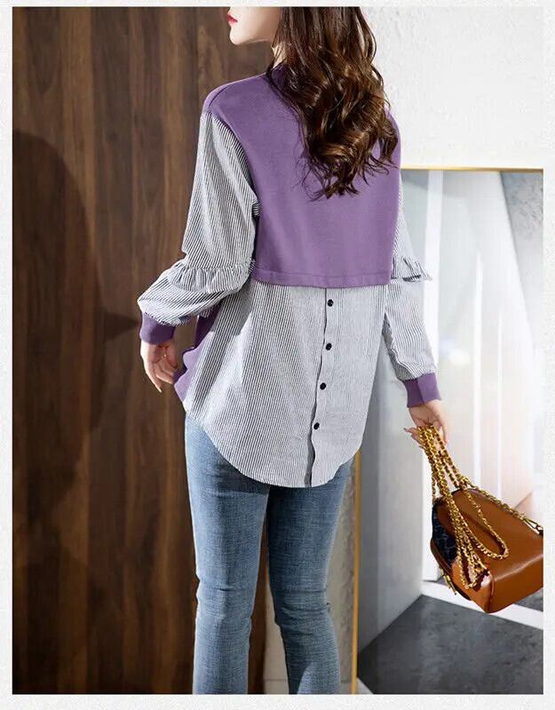 送料無料 O ネックボタンスプライシングフリルストライプブラウス女性の 2022 秋プルオーバーオールマッチシャツ ラッフル オータム 秋物 Oネック AE1288776649431682425