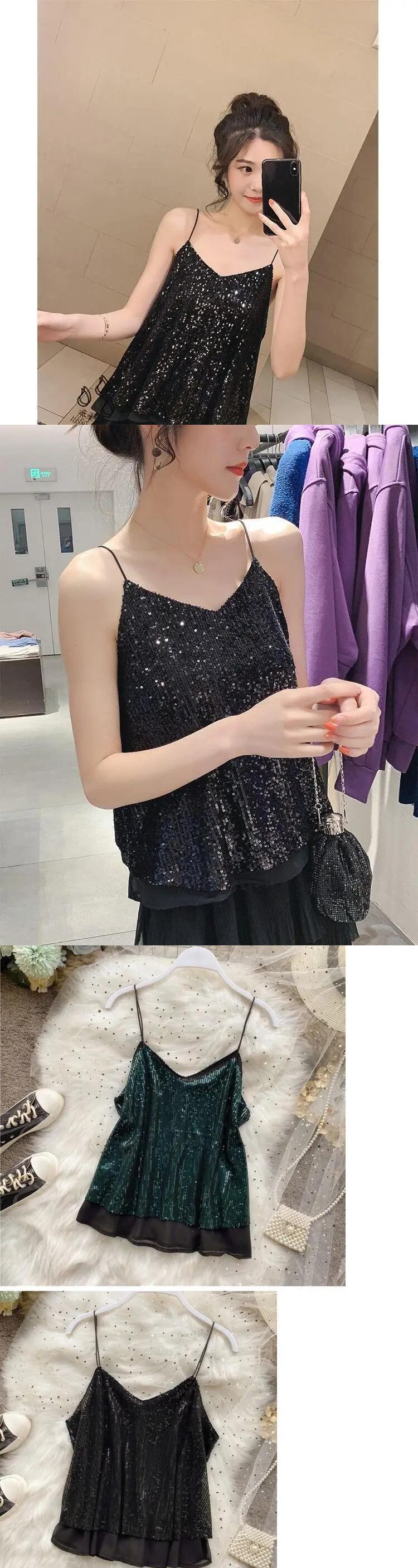 送料無料 V ネックセクシーなスパンコールスリップ Tシャツ女性の 2024 夏ルーズノースリーブトップスオフィスレディ Tシャツ サマー 夏物 Vネック 会社 学校 通勤や通学にも AE1288776615804454764