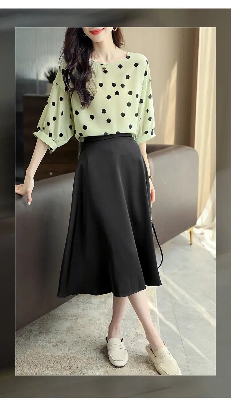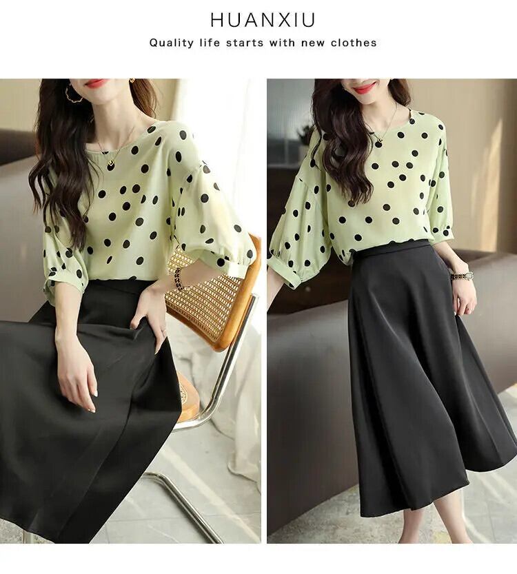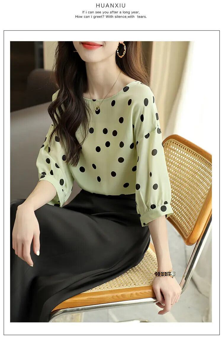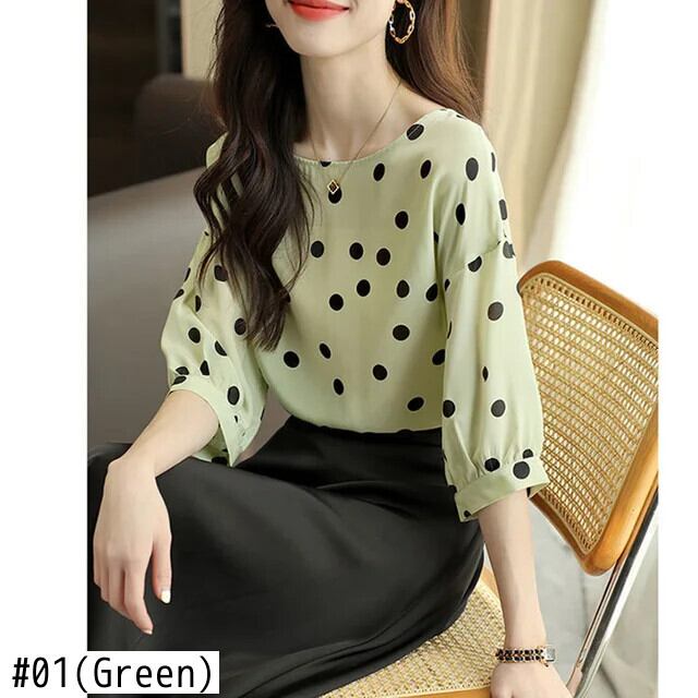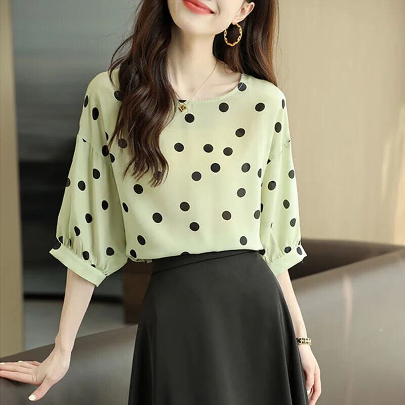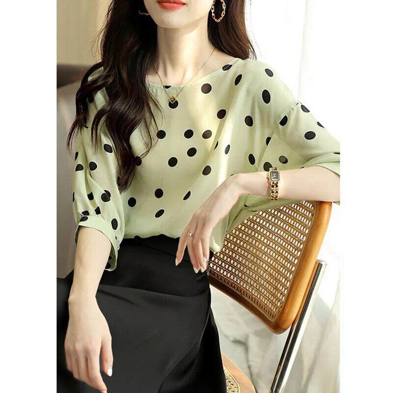 送料無料 プリント水玉ランタンスリーブ特大シフォンブラウス夏プルオーバールーズ通勤女性のシャツ サマー 夏物 AE1288776685117319395
