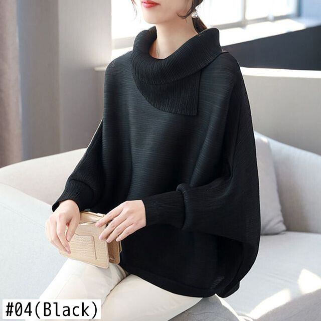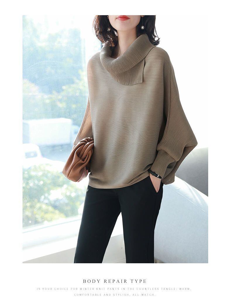 送料無料 ソリッドカラーひだ非対称ブラウス女性の 2023 秋冬特大トップスバットウィングスリーブシャツ オータム 秋物 ウィンター 冬物 AE1288776661038114589