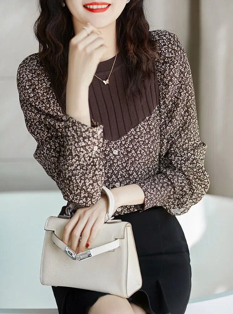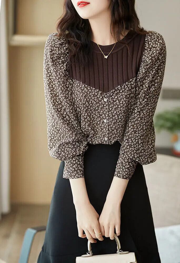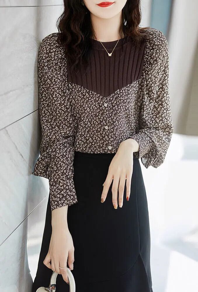 送料無料 ヴィンテージプリントボタンシフォンスプライス花柄ブラウス2023秋特大プルオーバーシャツ オータム 秋物 ビンテージ AE1288776612996944167