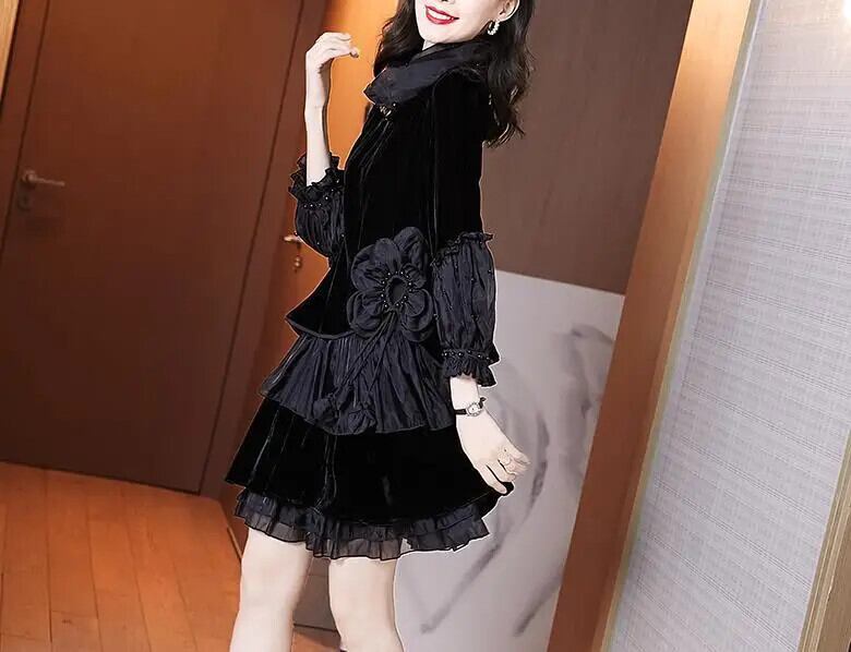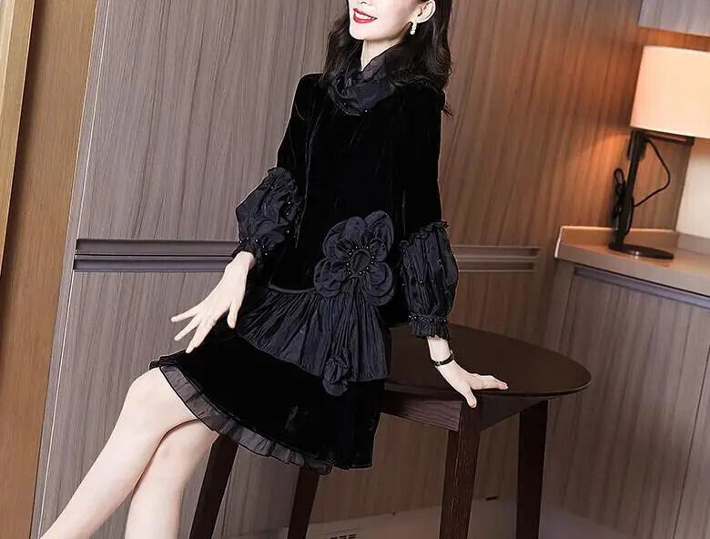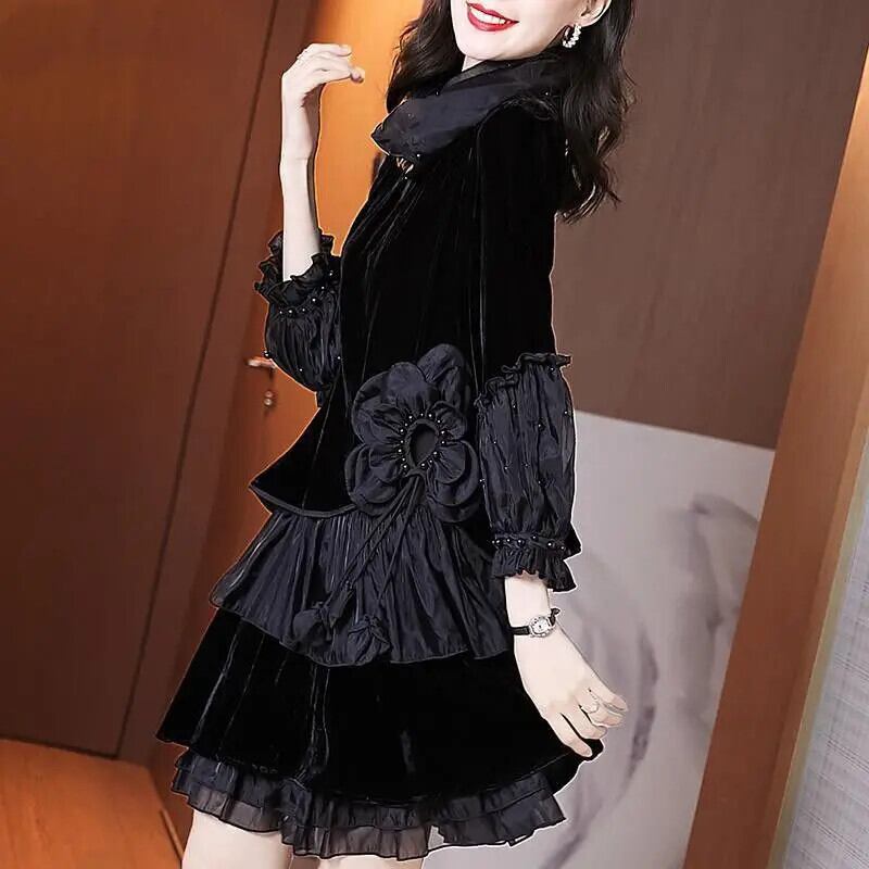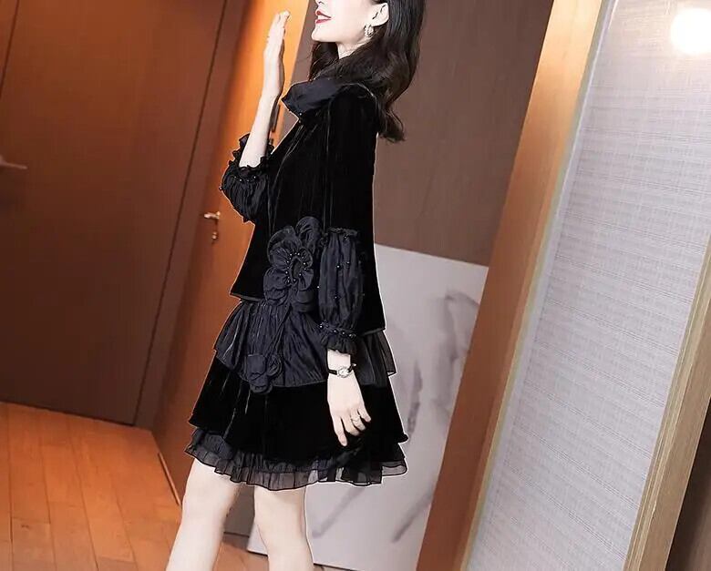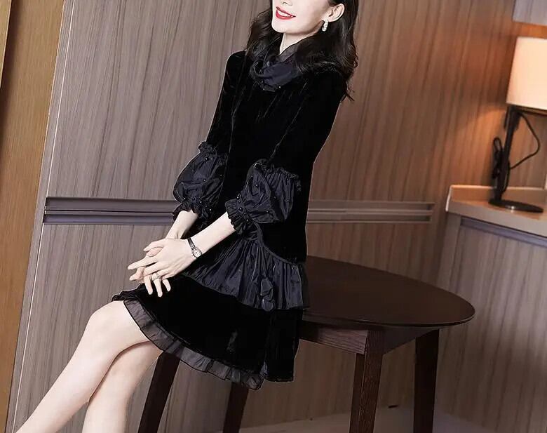 送料無料 スプライシングビーズ不規則なガーゼフリルミニドレス女性の 2024 春ルーズオフィスレディドレス ラッフル スプリング 春物 会社 学校 通勤や通学にも AE1288776651879316226