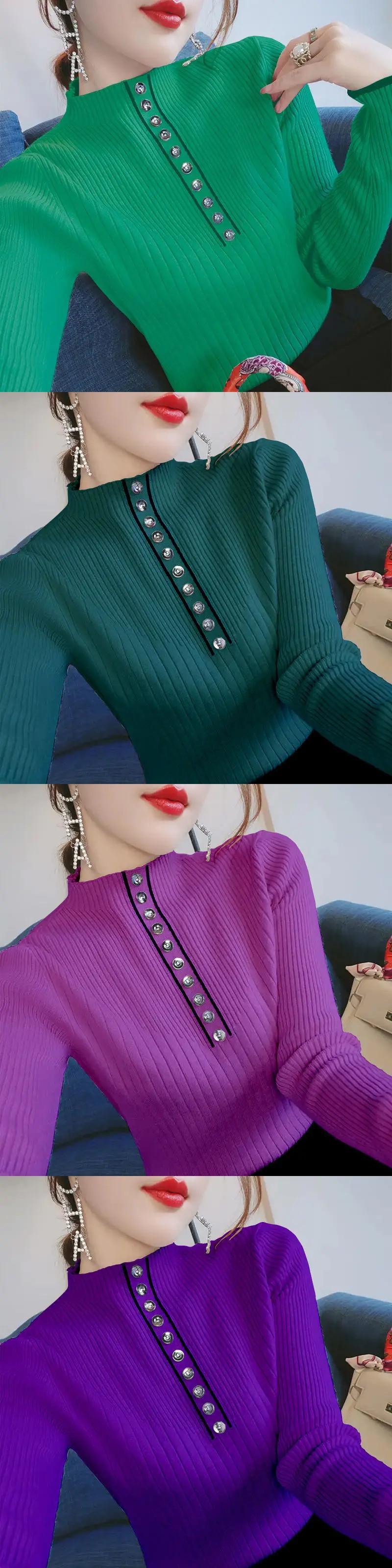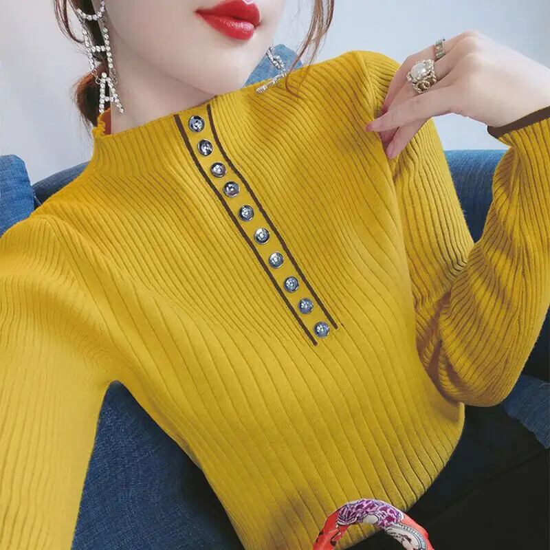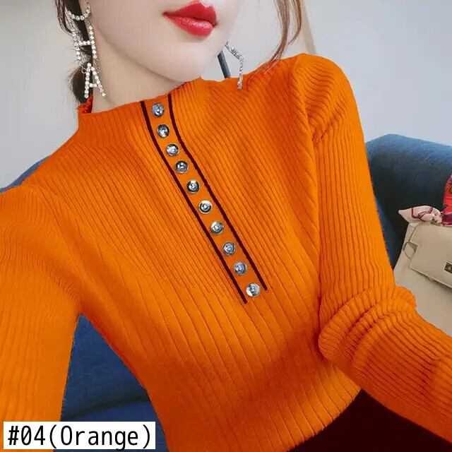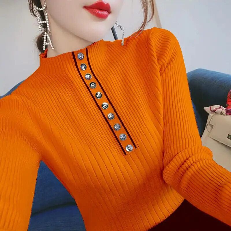 送料無料 ソリッドカラーボタンオールマッチニットブラウス女性の 2022 秋プルオーバートップスルーズシャツ オータム 秋物 AE128877663176720244