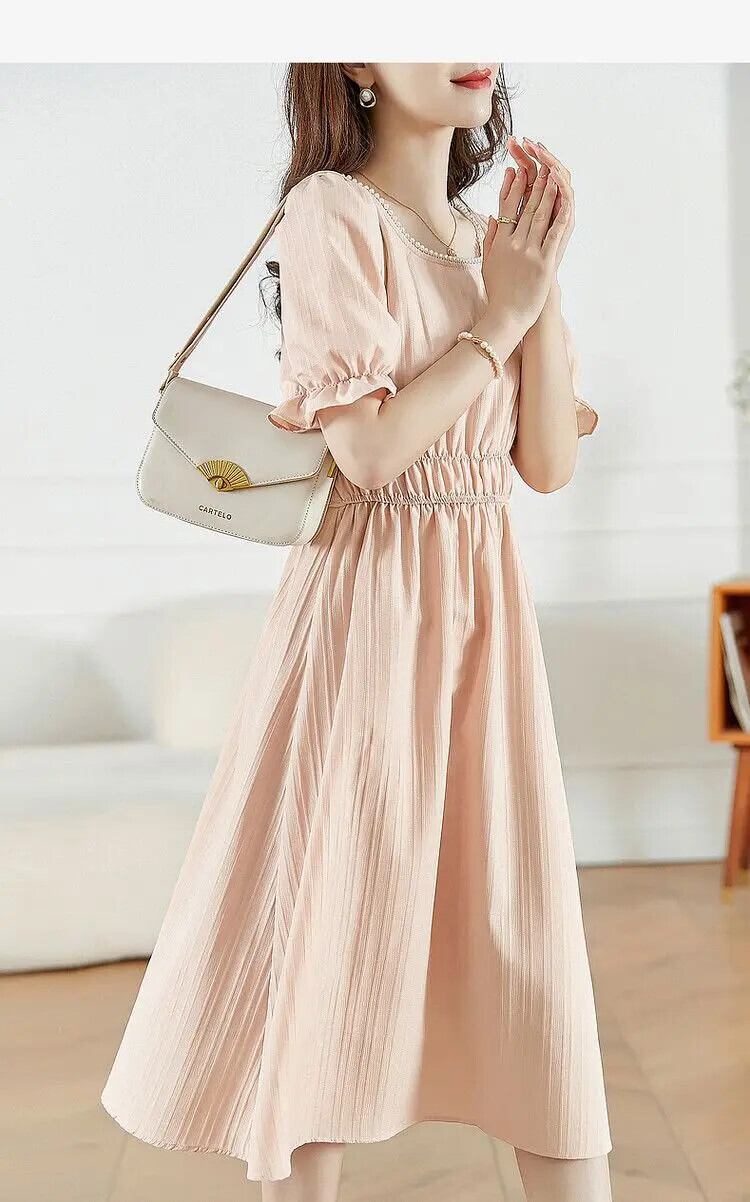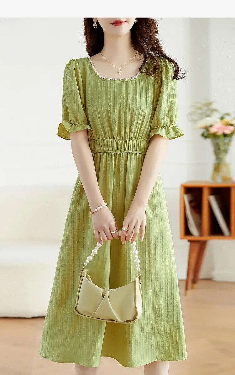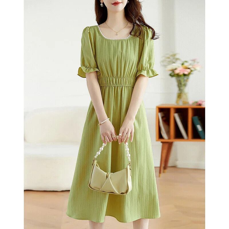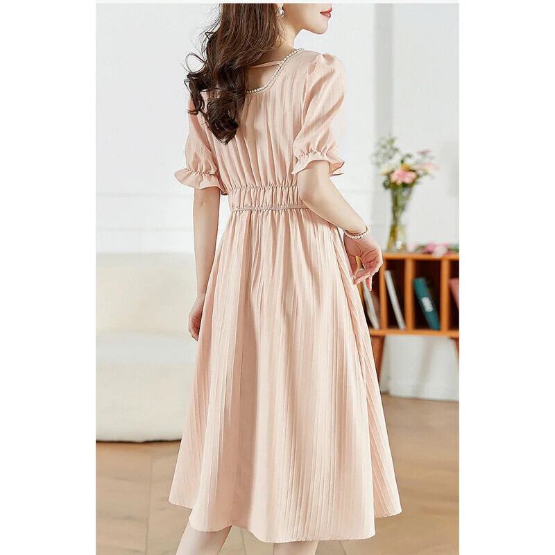 送料無料 スクエアカラービーズバタフライスリーブパーティードレス女性の 2024 夏ルーズソリッドカラードレス サマー 夏物 スクウェア AE1288776638353580237