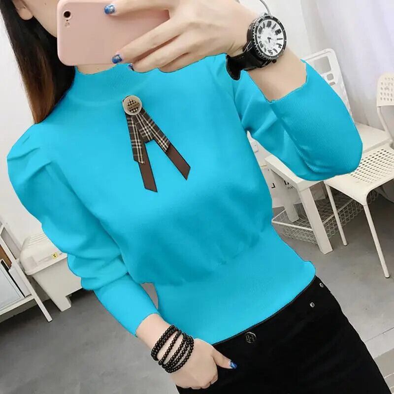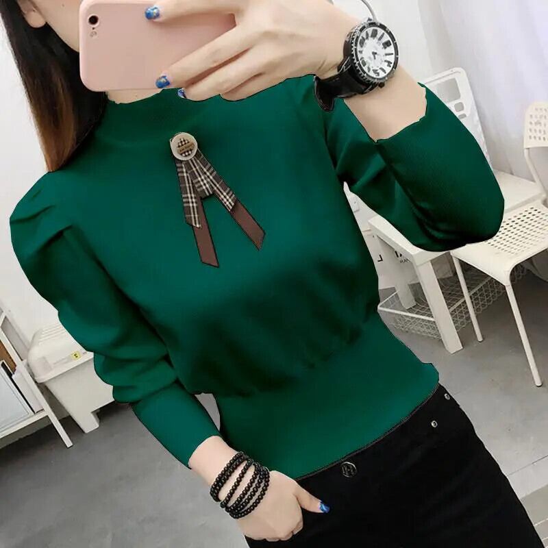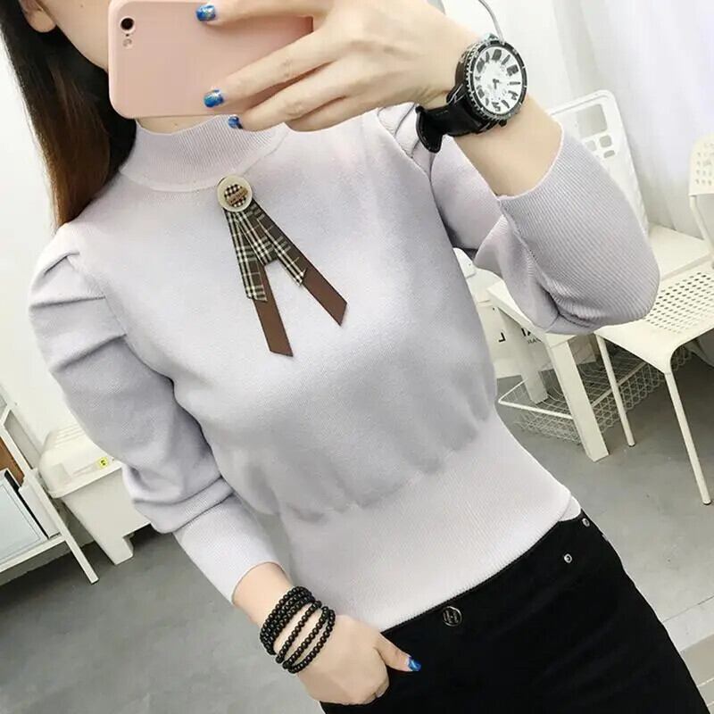 送料無料 甘いスタンドカラースプライシングボウパフスリーブセーター2024春ルーズニットプルオーバートップス リボン 大人ガーリー スウィート キュート カジュアル スプリング 春物 AE1288776681957065362