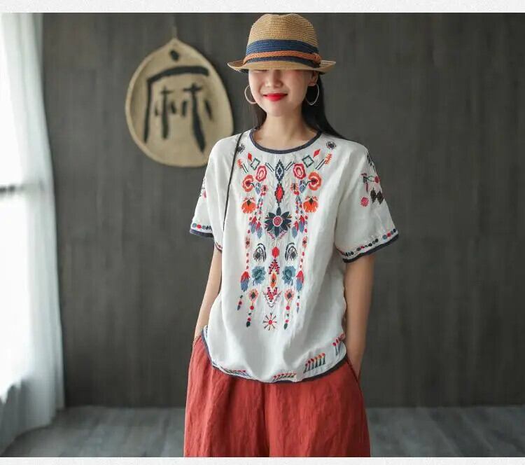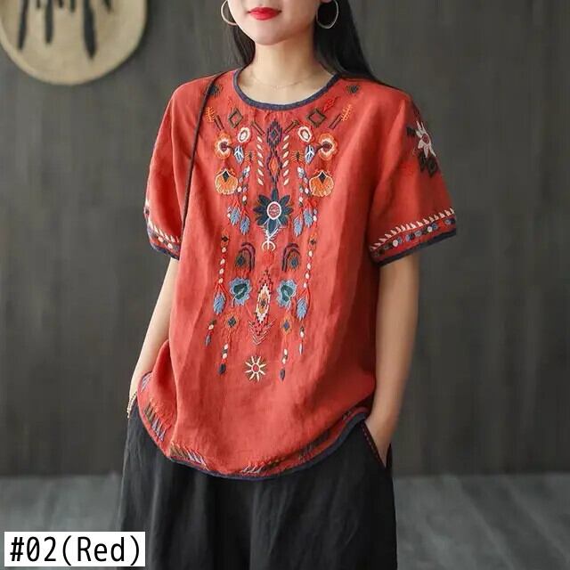 送料無料 ヴィンテージ O ネックスプライシングルーズオールマッチ刺繍ブラウス女性の 2024 夏特大トップス通勤シャツ サマー 夏物 Oネック ビンテージ AE1288776629205289631