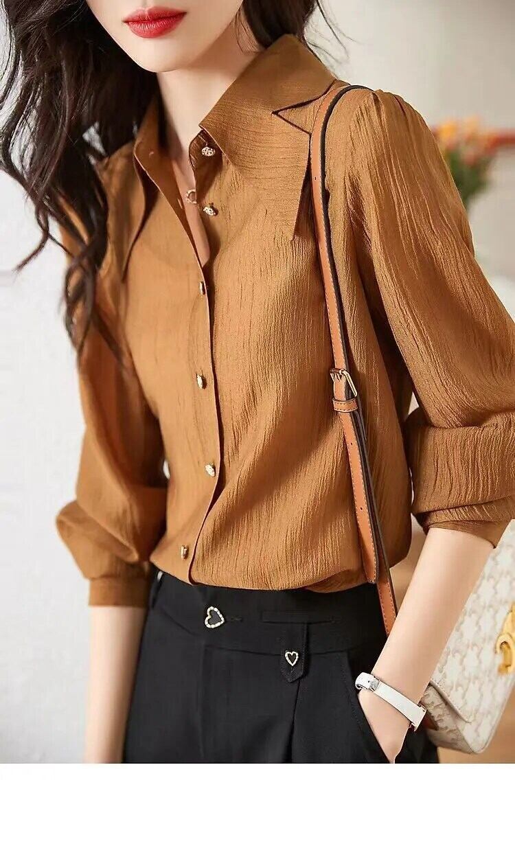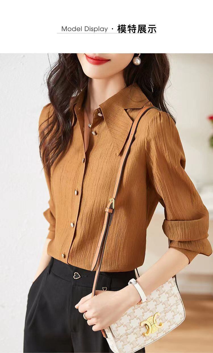 送料無料 ラペルボタンスプライシングルーズソリッドカラーシャツ女性の 2023 春トップスオールマッチオフィスレディブラウス スプリング 春物 会社 学校 通勤や通学にも AE1288776644351183513