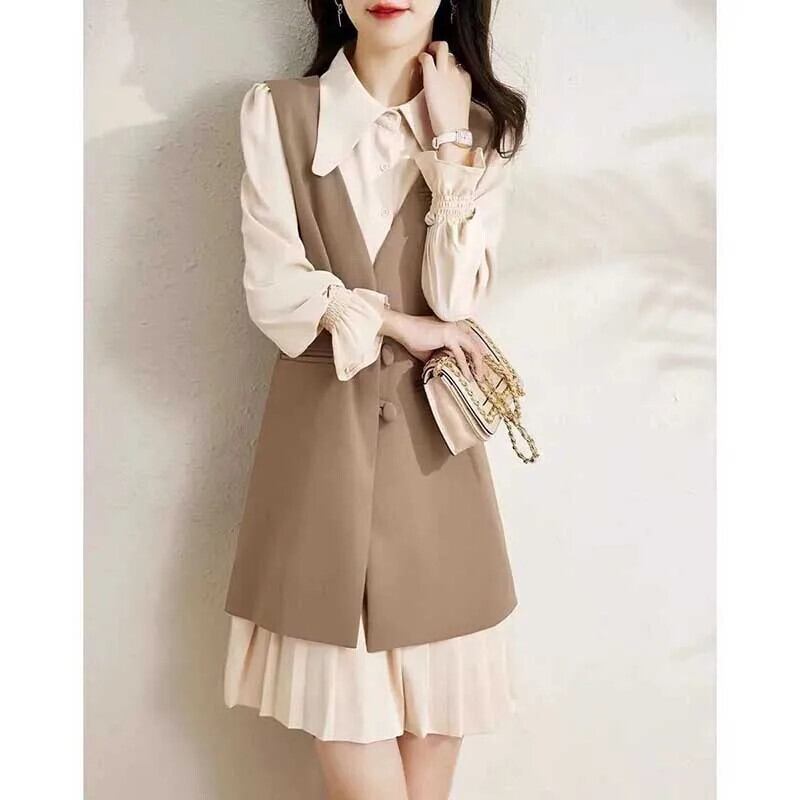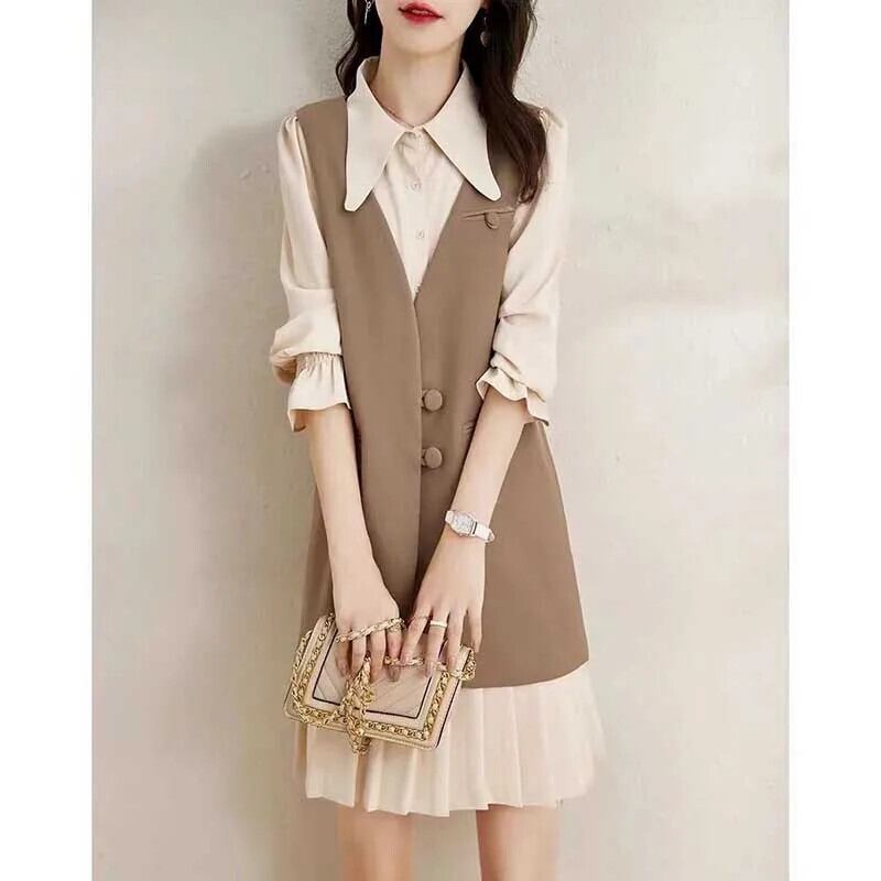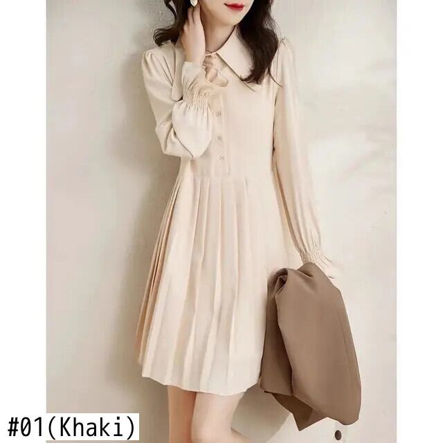 送料無料 ラペルソリッドカラーひだバタフライスリーブミディドレス女性の 2024 春ルーズオフィスレディドレス スプリング 春物 会社 学校 通勤や通学にも AE1288776633508478292