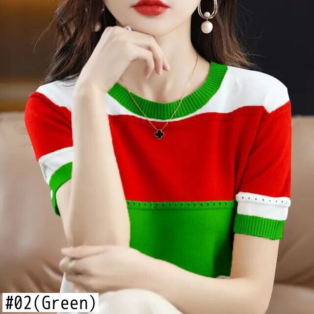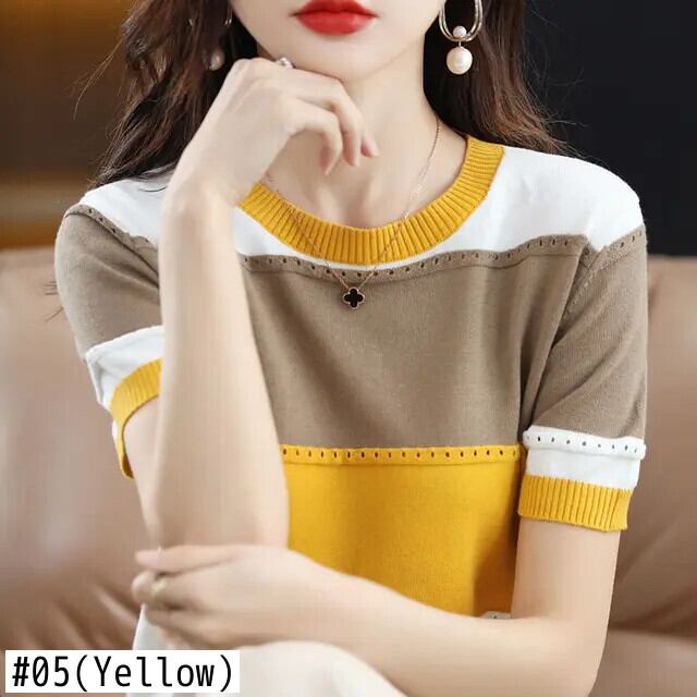 送料無料 半袖スプライスオールマッチカラー Tシャツ レディース 2023 春 プルオーバー ニット Tシャツ ショート ハーフスリーブ スプリング 春物 AE1288776616381753125