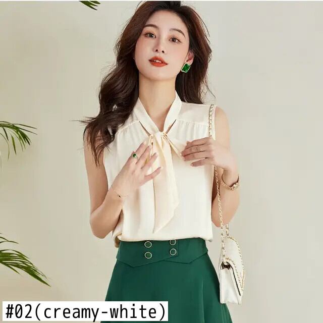 送料無料 V ネックスプライシングノースリーブレースアップリボンシフォンブラウス女性の 2023 夏プルオーバーオフィスレディシャツ サマー 夏物 Vネック 会社 学校 通勤や通学にも AE128877666289507137
