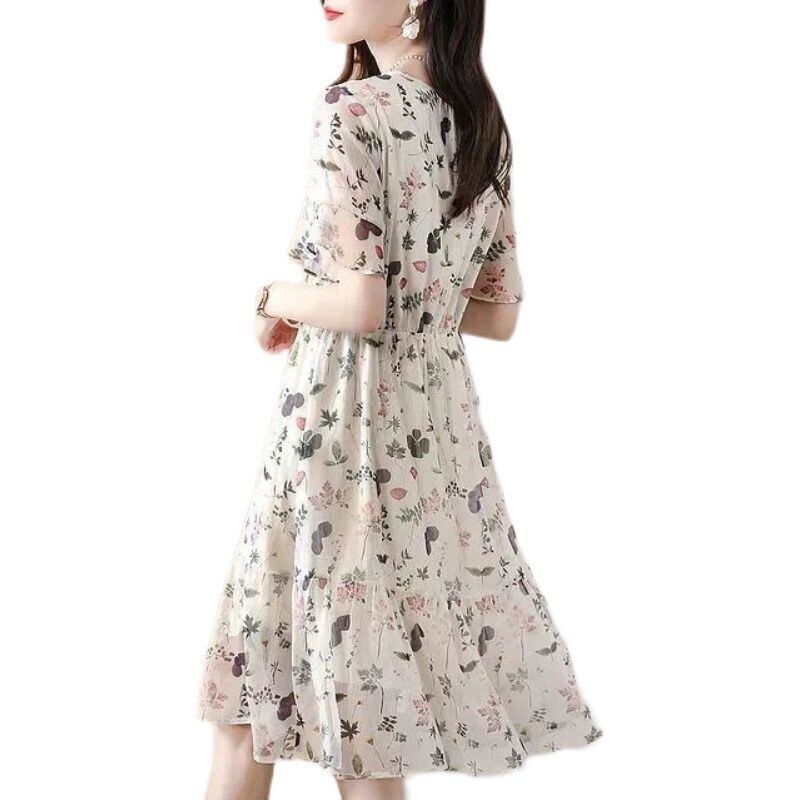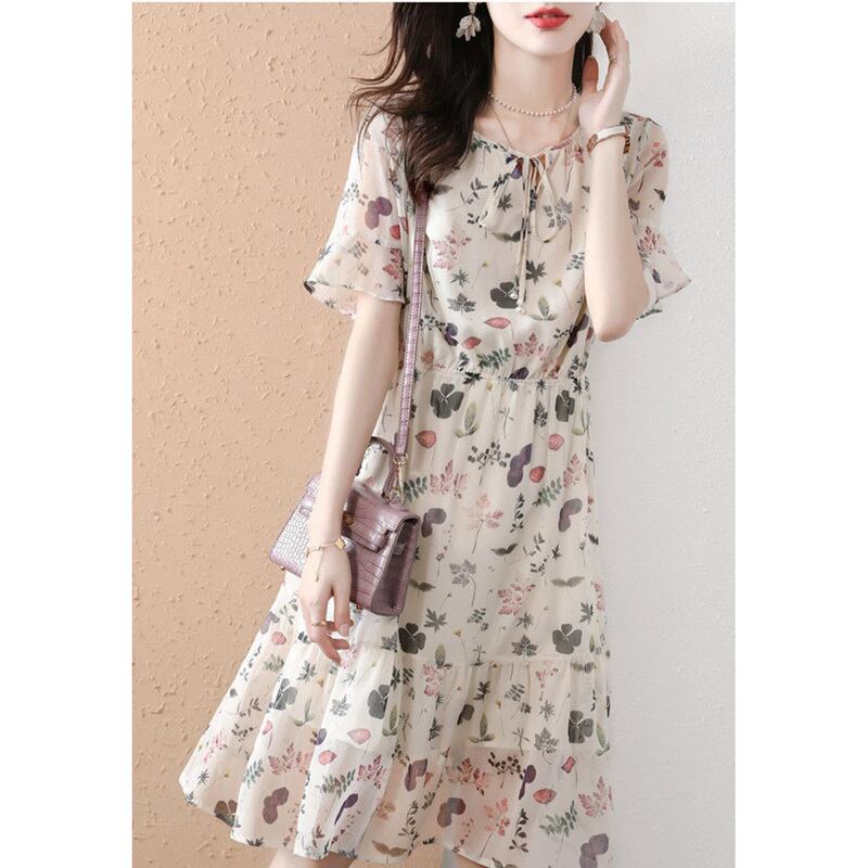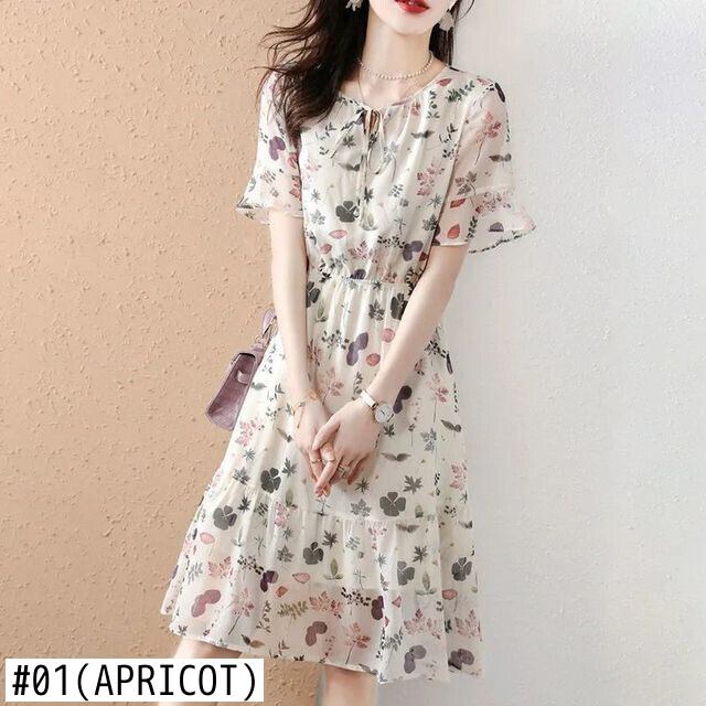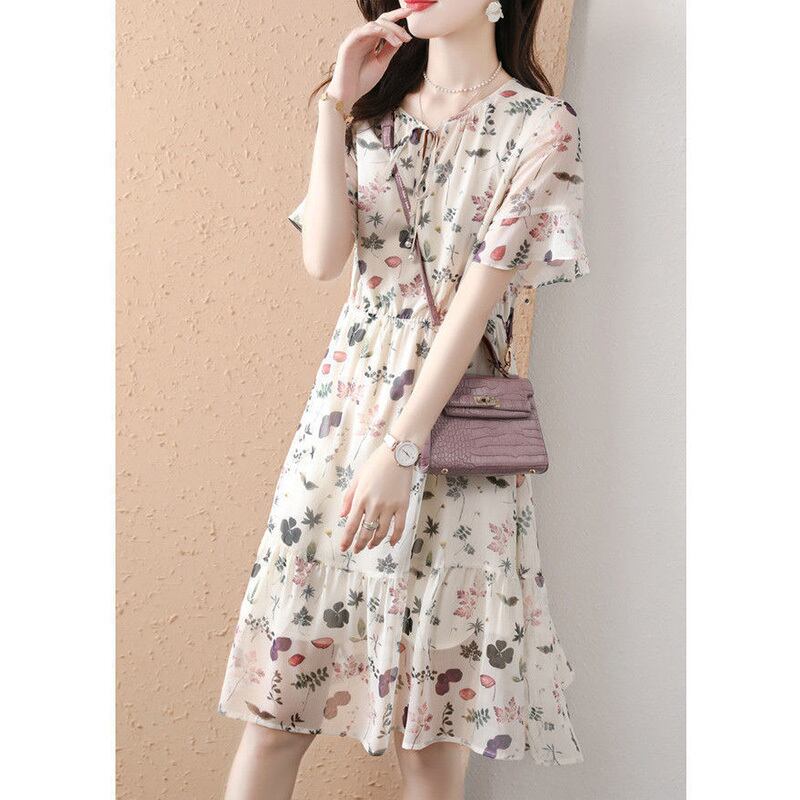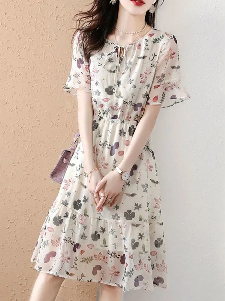送料無料 O ネックレースアップリボンプリントバタフライスリーブ花柄ドレス女性の 2024 夏ルーズオフィスレディミディドレス サマー 夏物 Oネック 会社 学校 通勤や通学にも AE1288776686208835263