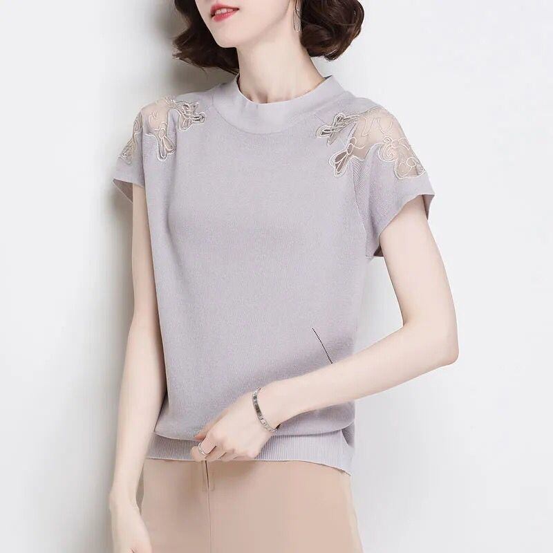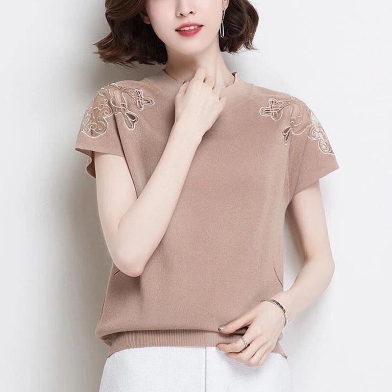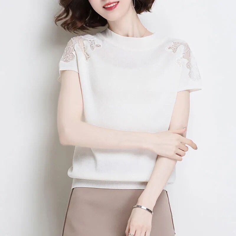 送料無料 O ネックスプライシングレース中空アウトオフショルダーブラウス女性の 2023 夏プルオーバーオフィスレディシャツ サマー 夏物 Oネック 会社 学校 通勤や通学にも AE1288776624405494587