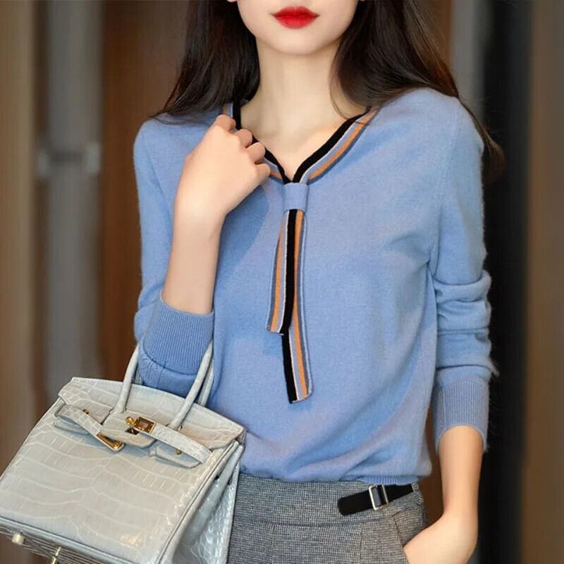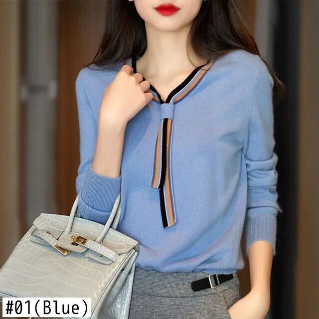送料無料 V ネックスプライスレースアップブラウス女性の 2023 春ルーズプルオーバーオールマッチ通勤シャツ スプリング 春物 Vネック AE1288776645447894019