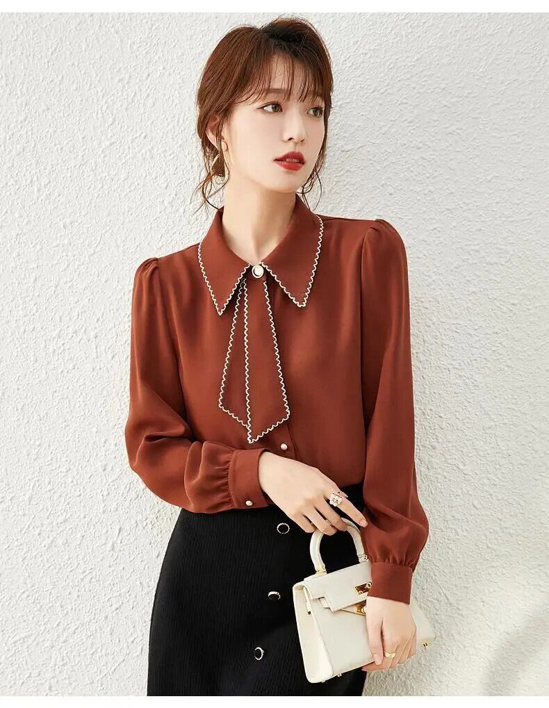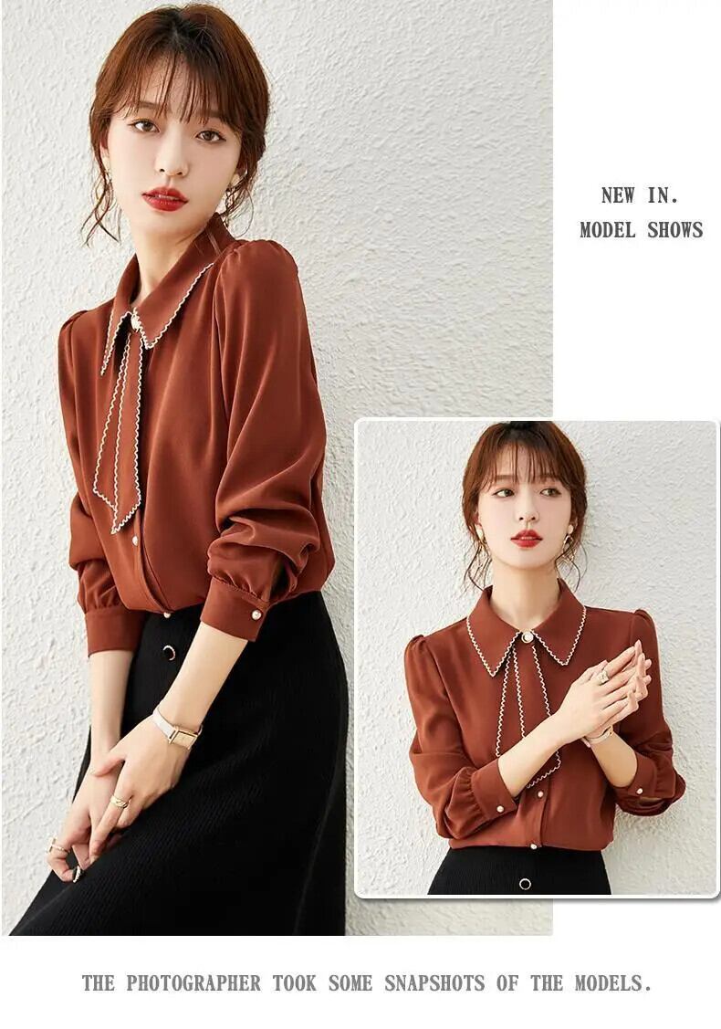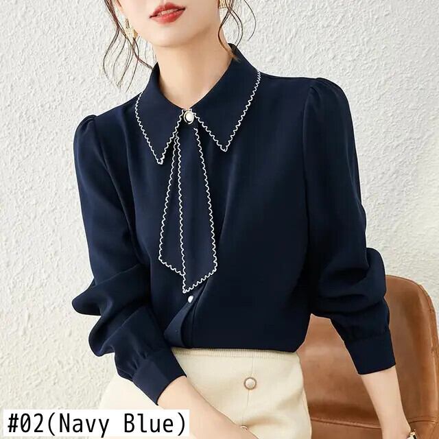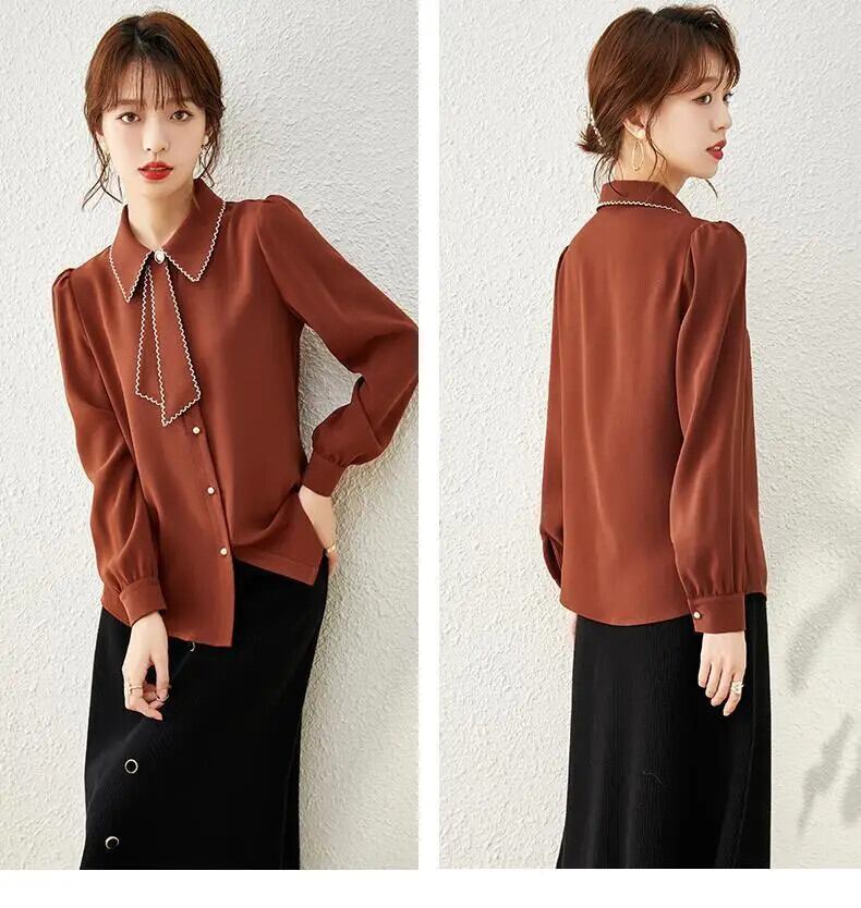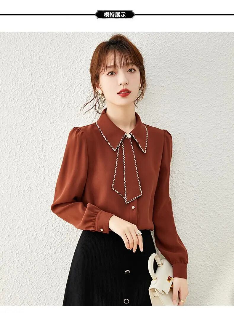 送料無料 オフィスレディ無地ボタンシャツ女性の 2022 春通勤ラペル長袖ルーズ女性ブラウス 3XL ロング スプリング 春物 ソリッドカラー 会社 学校 通勤や通学にも AE1288776623503263433