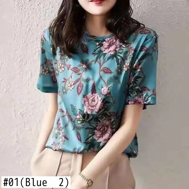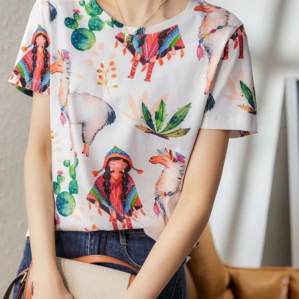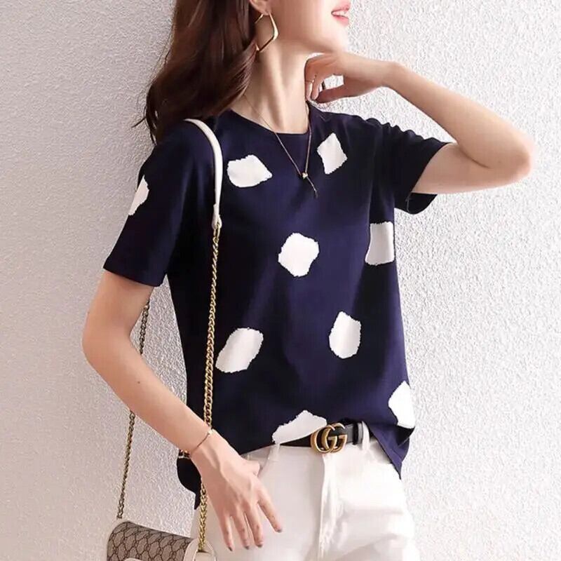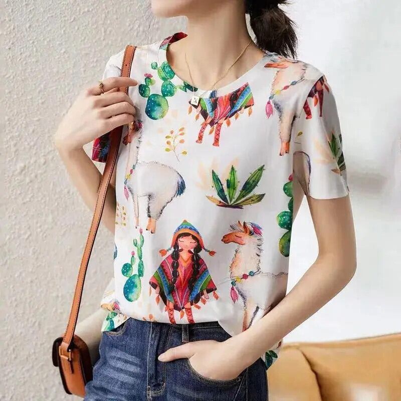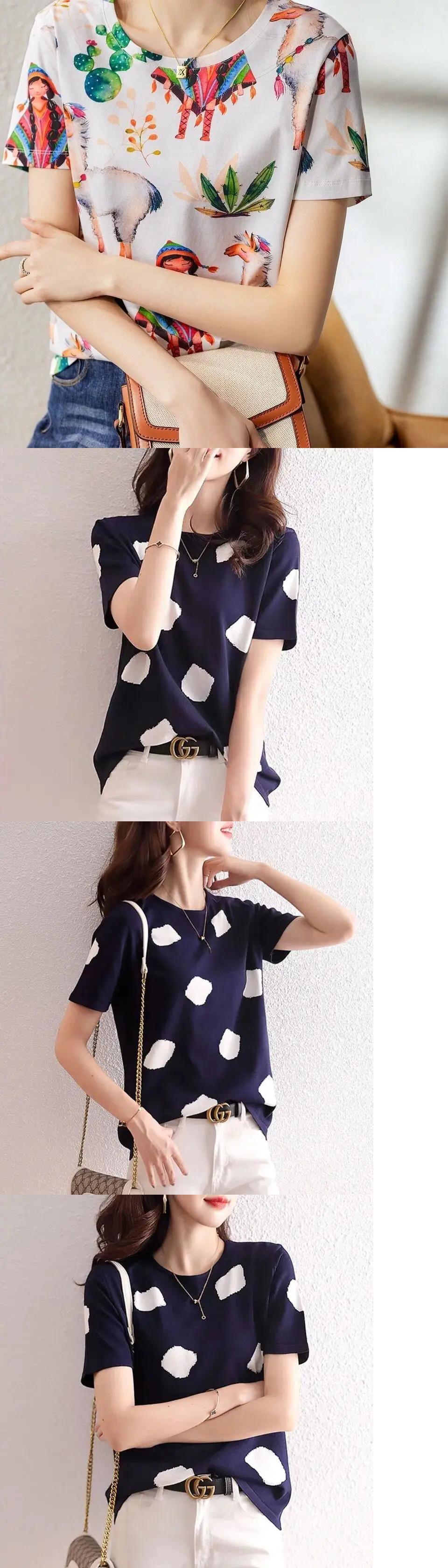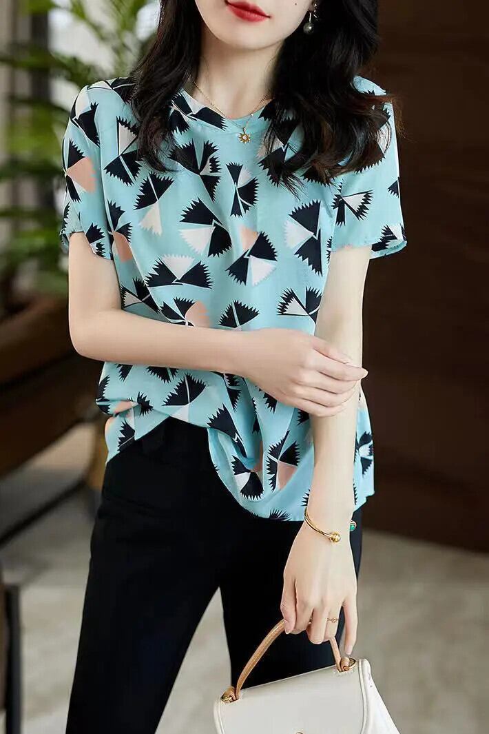 送料無料 O ネックプリントオールマッチ半袖ブラウス女性の 2024 夏ルーズトップスシャツ ショート ハーフスリーブ サマー 夏物 Oネック AE1288776642144890416