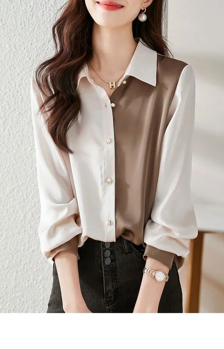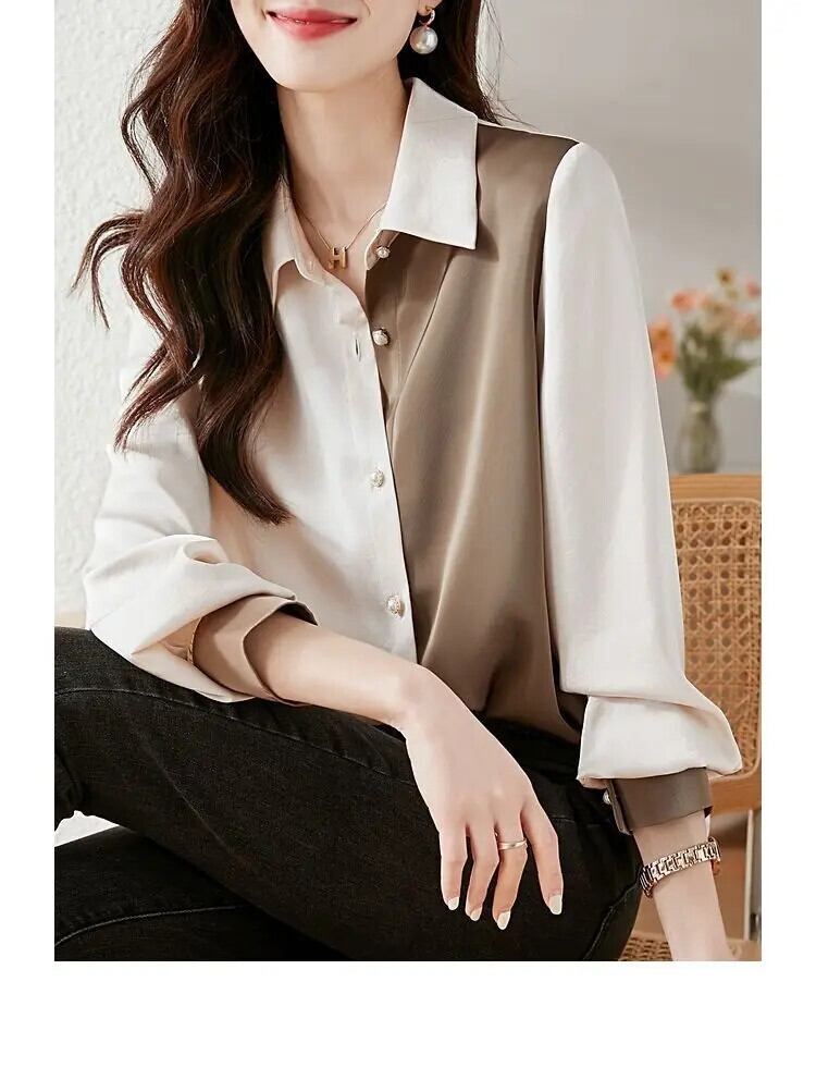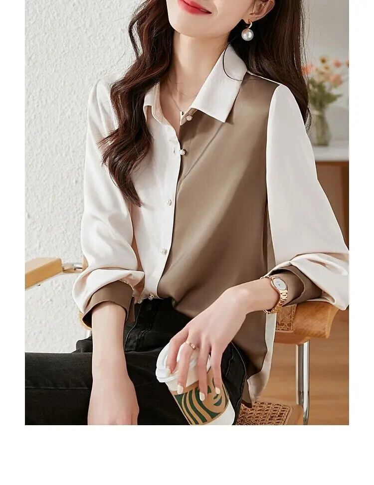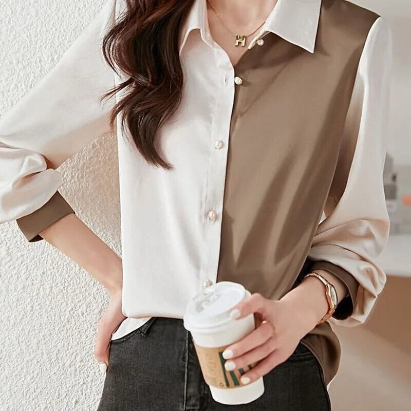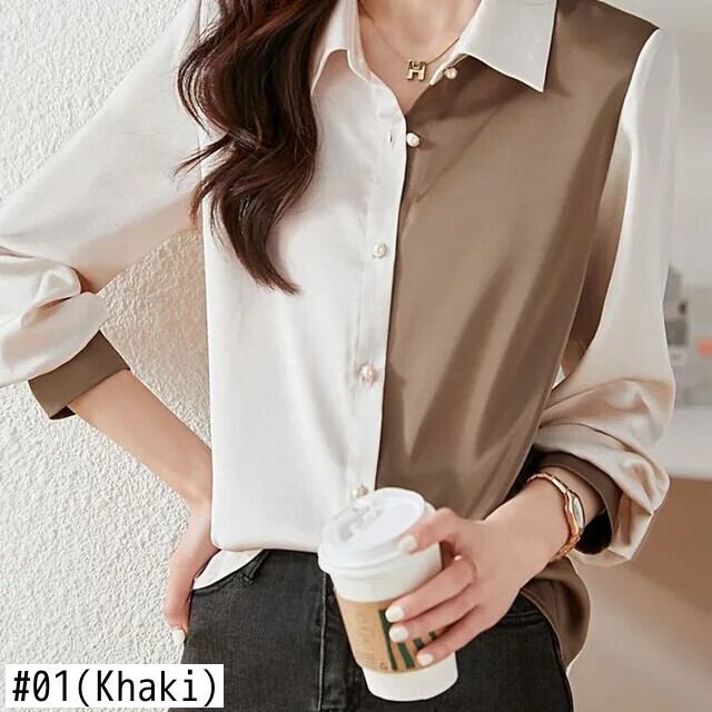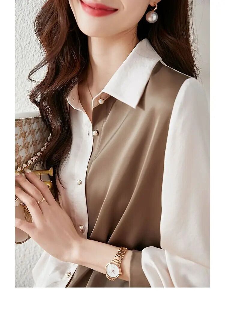 送料無料 ターンダウンカラーボタンスプライスシフォンシャツレディース 2022 秋トップスオールマッチオフィスレディブラウス オータム 秋物 会社 学校 通勤や通学にも AE1288776651482427047