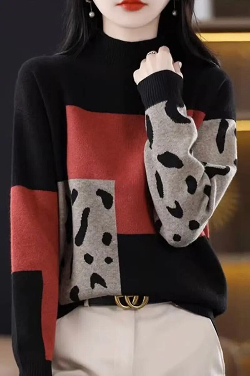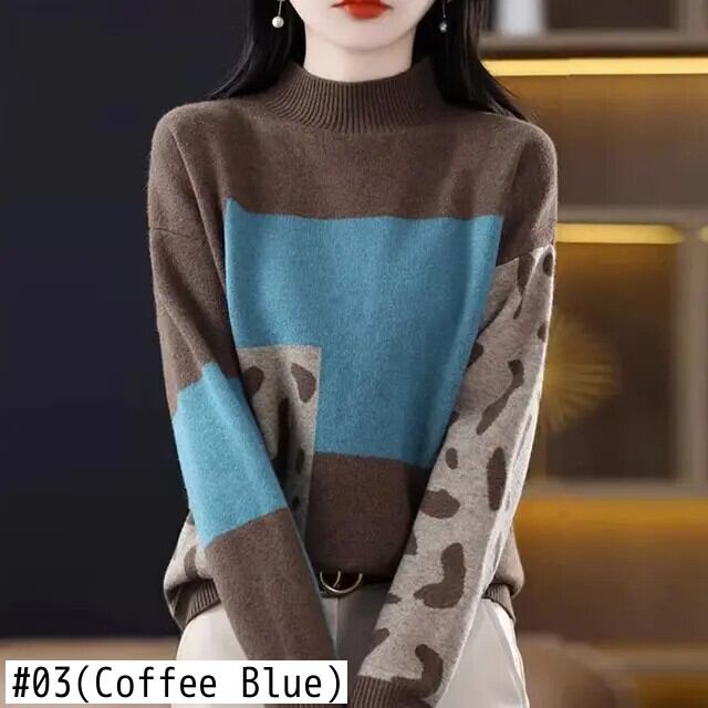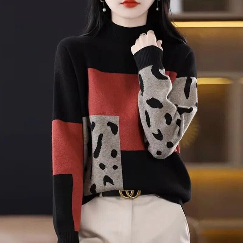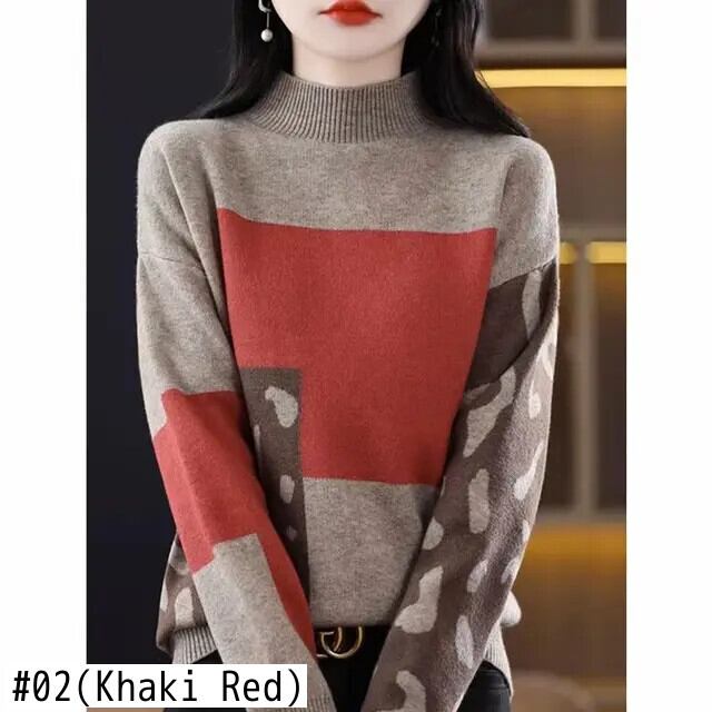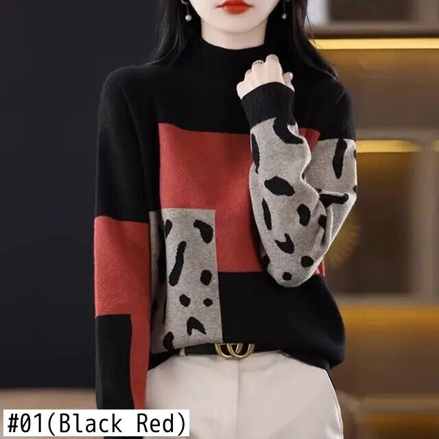 送料無料 スタンドカラースプライスカラーセーター女性 2023 冬ルーズニットプルオーバー通勤トップス ウィンター 冬物 AE1288776622890860544