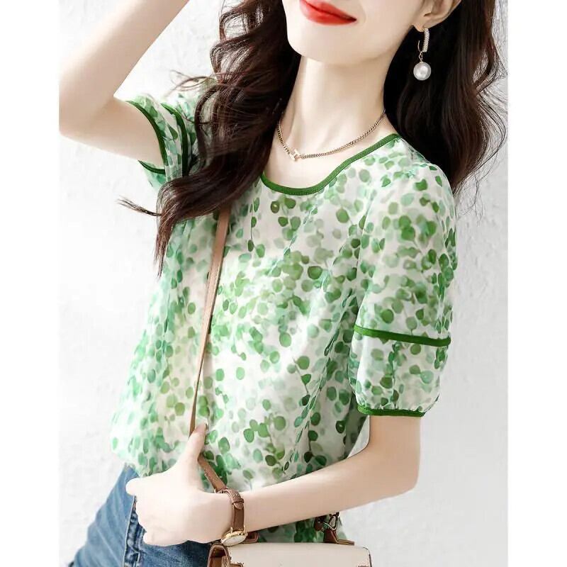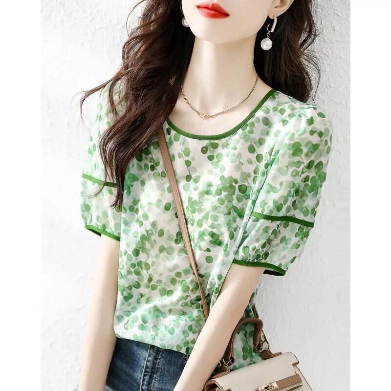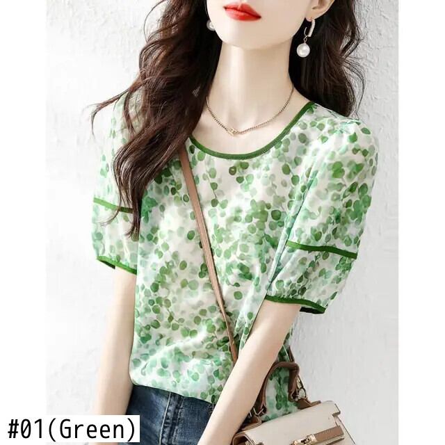 送料無料 O ネック プリント パフ スリーブ タイダイ ブラウス サマー プルオーバー ヤング スタイル レディース ルーズ 通勤 シャツ 夏物 Oネック AE1288776636786293629