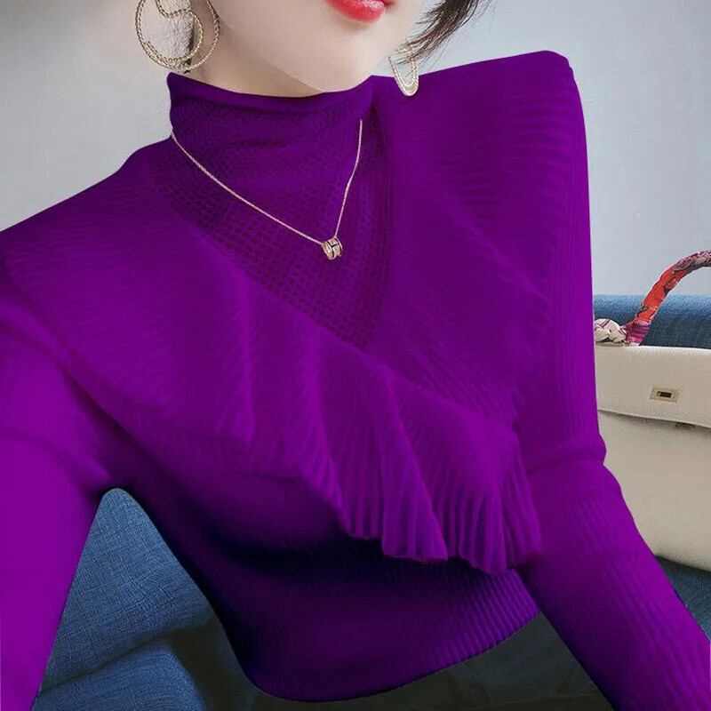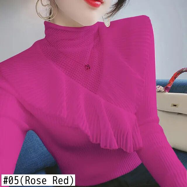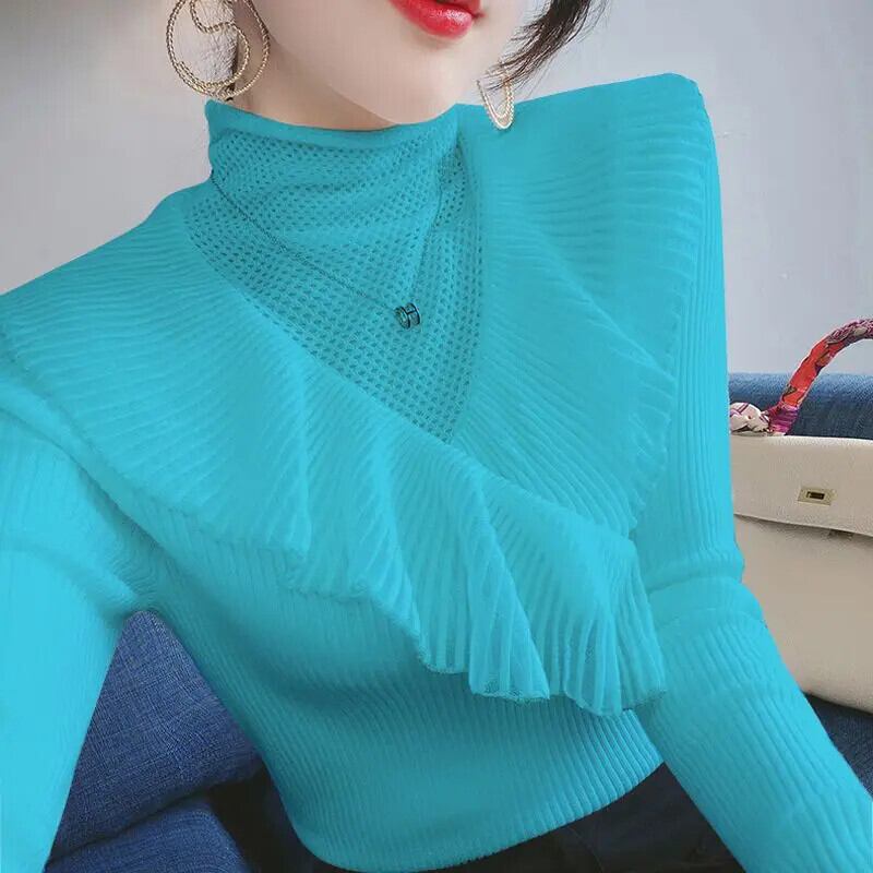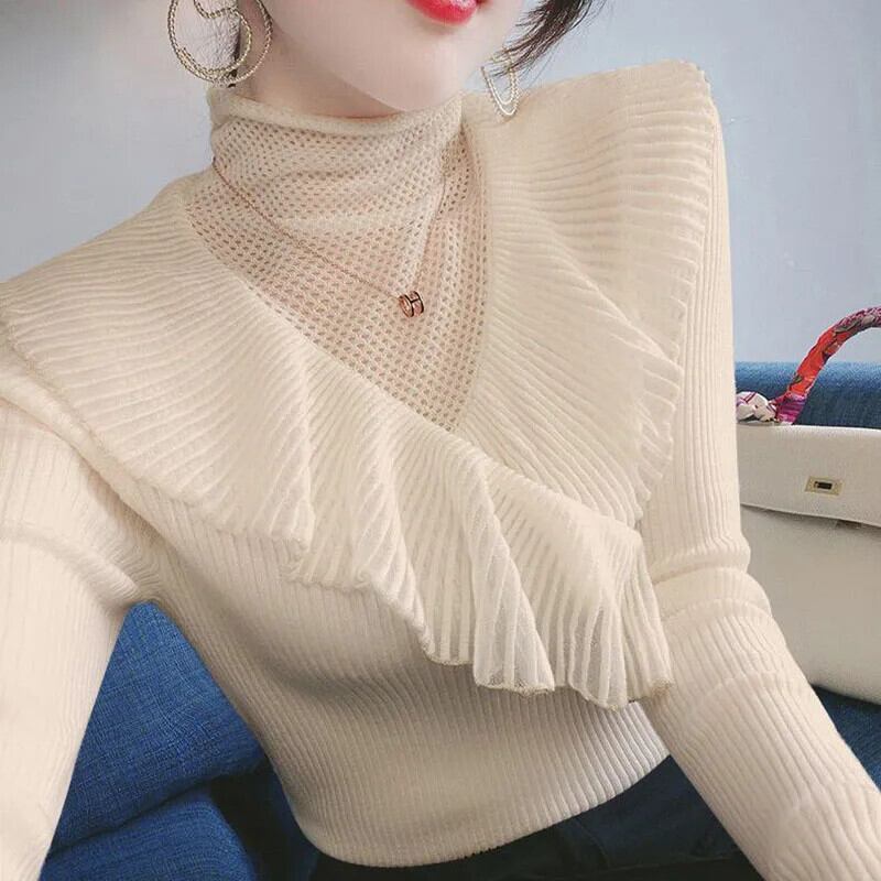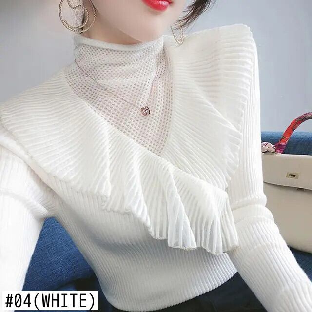 送料無料 スタイリッシュなソリッドカラースプライシング中空アウトガーゼレースセーター 2022 秋プルオーバールーズトップス オータム 秋物 AE1288776627324414415
