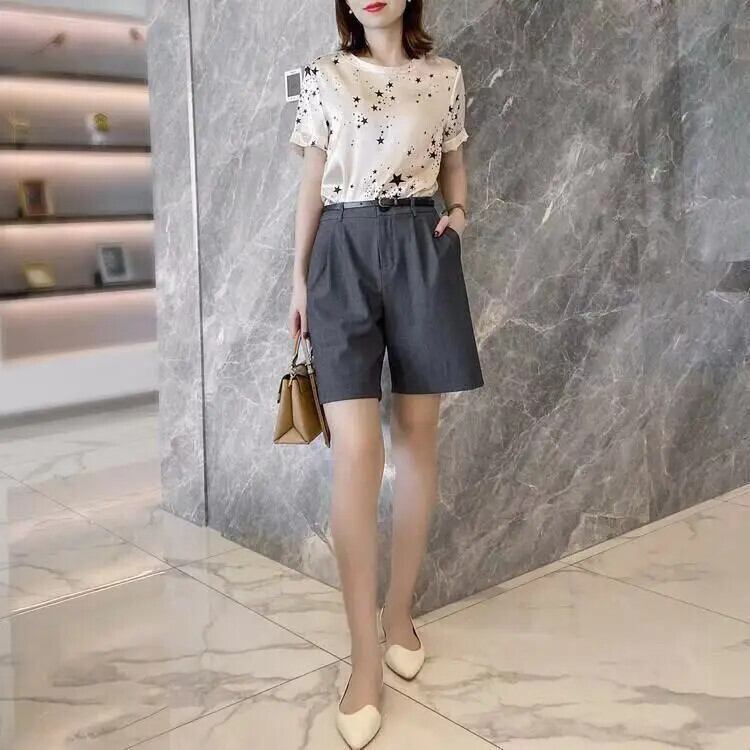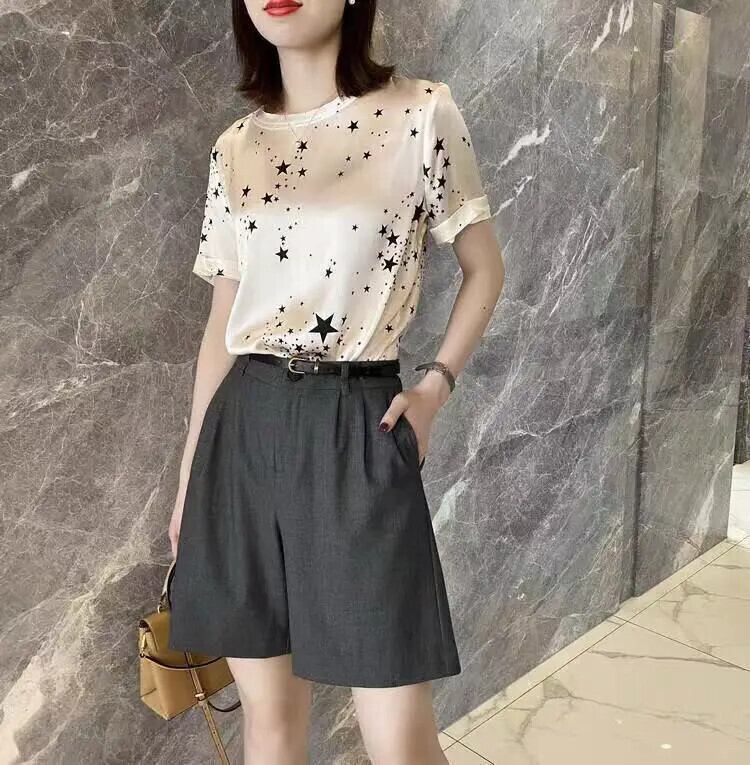 送料無料 プリント特大ルーズ半袖トップス夏のクルーネックプルオーバー通勤女性 Tシャツ ショート ハーフスリーブ サマー 夏物 AE1288776688955975557