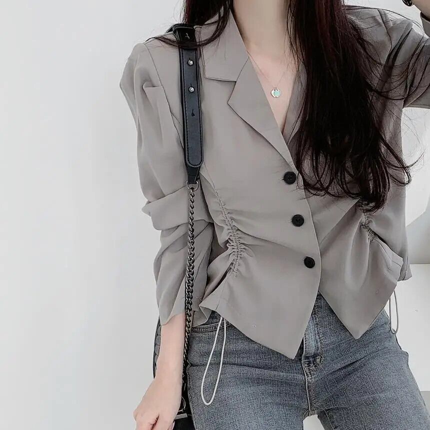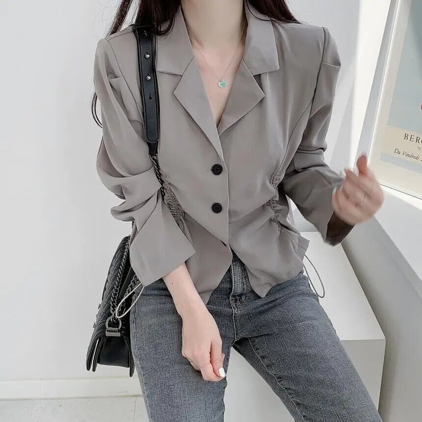 送料無料 ラペル無地ルーズシャーリングシャツレディース 2023 春トップスオールマッチオフィスレディブラウス スプリング 春物 ソリッドカラー 会社 学校 通勤や通学にも AE1288776622460567989
