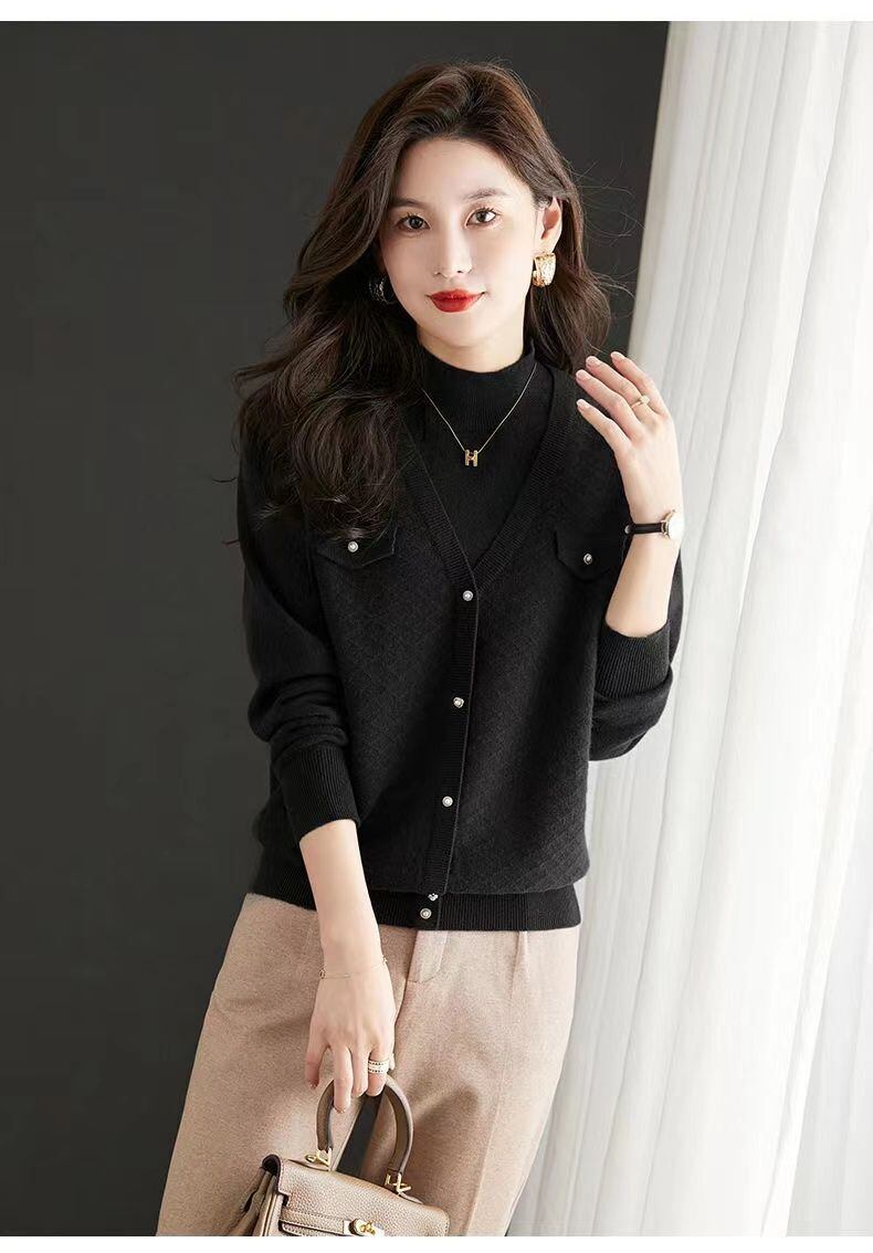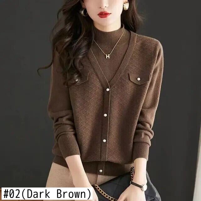 送料無料 タートルネックボタンフェイクツーピースセーター女性の 2023 秋冬プルオーバーオールマッチトップス オータム 秋物 ウィンター 冬物 AE1288776656328925872