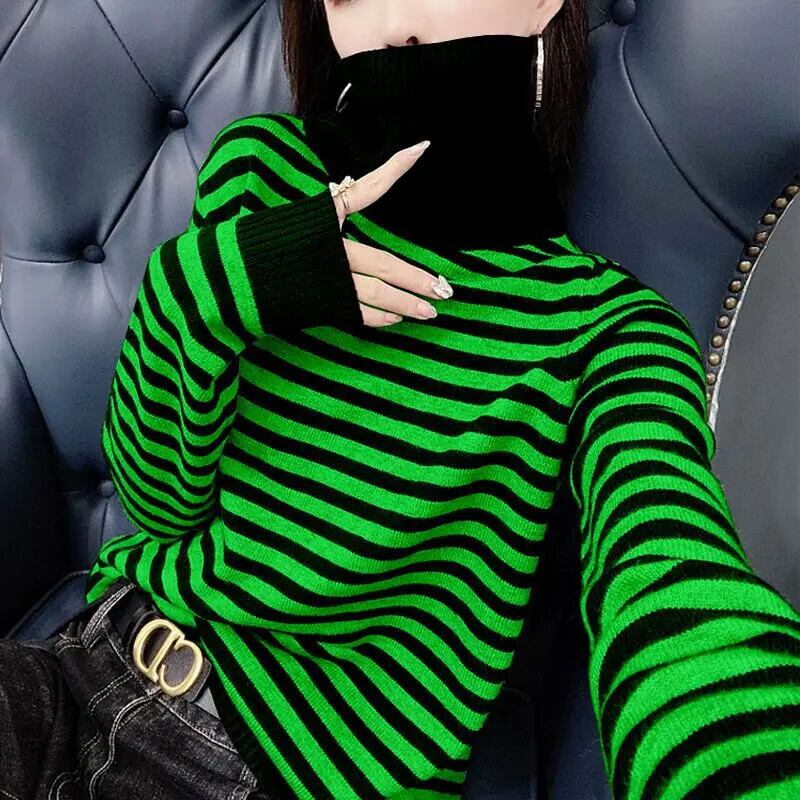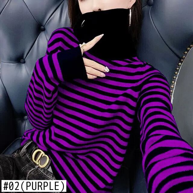 送料無料 プリントタートルネックストライプセーター女性の 2023 秋特大プルオーバーオールマッチトップス オータム 秋物 AE128877664606351204
