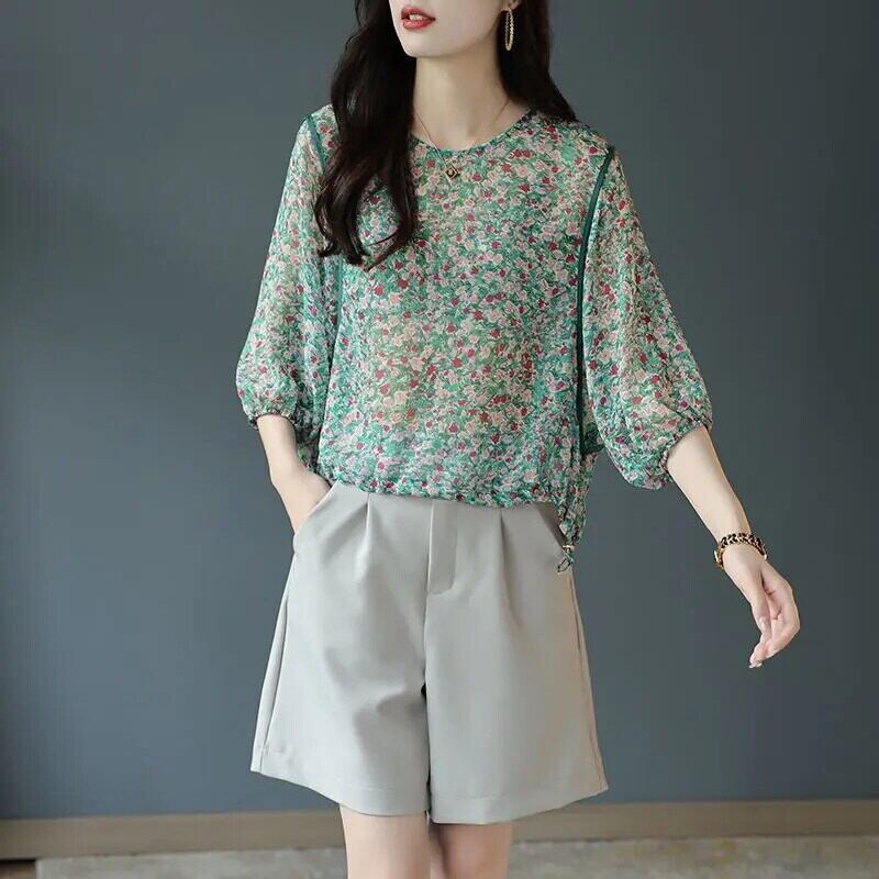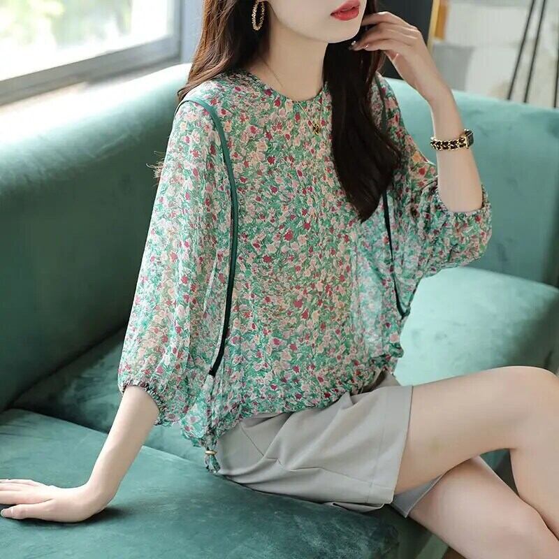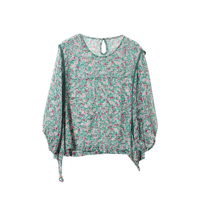 送料無料 O ネックスプライシングシャーリングシフォン花柄ブラウスレディース 2023 春特大プルオーバー通勤シャツ スプリング 春物 Oネック AE1288776633876162209