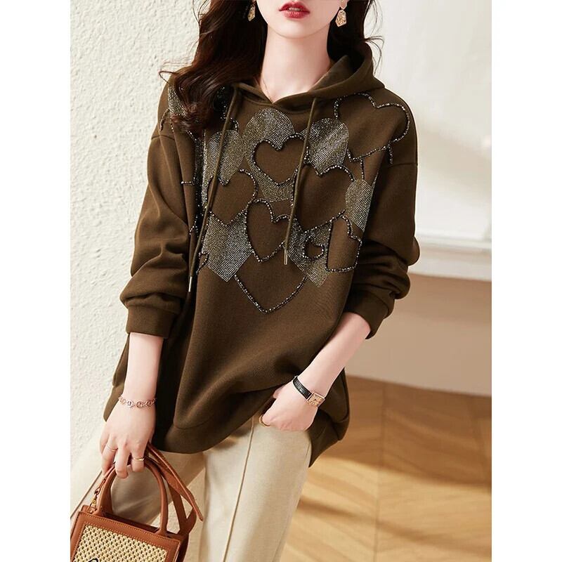 送料無料 フード付きソリッドカラーレースアップダイヤモンドブラウス女性の 2023 秋冬特大トップス通勤シャツ オータム 秋物 ウィンター 冬物 AE1288776656416232444