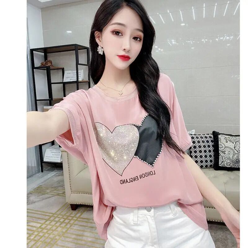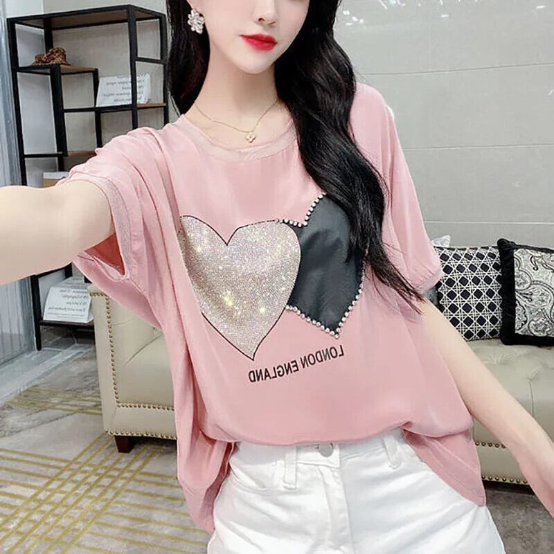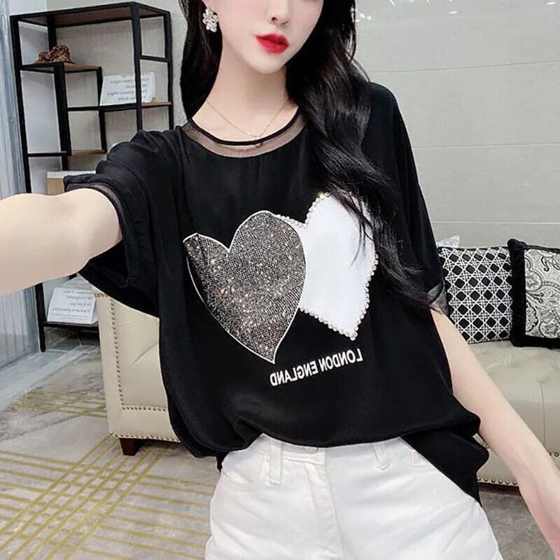 送料無料 中空アウトレースダイヤモンドバットウィングスリーブブラウス女性の 2024 夏特大プルオーバービーズシャツ サマー 夏物 AE1288776646863132583