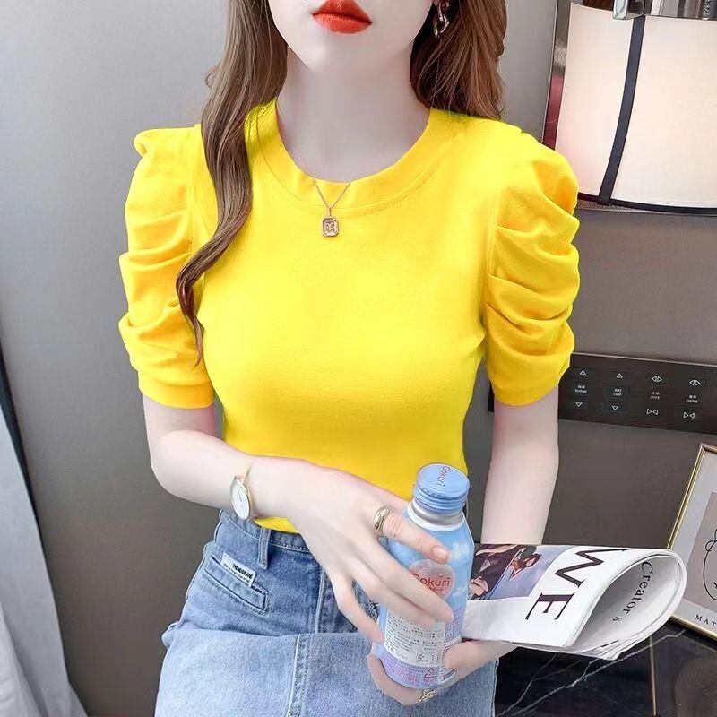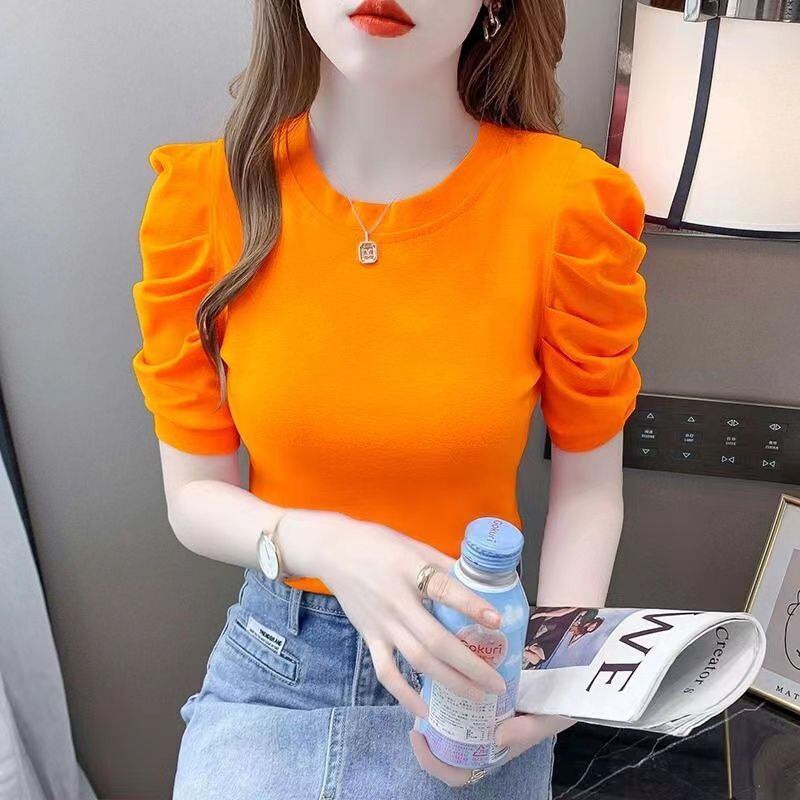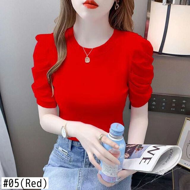 送料無料 甘いルーズソリッドカラーひだパフスリーブブラウス 2024 夏プルオーバーオールマッチオフィスレディシャツ 大人ガーリー スウィート キュート カジュアル サマー 夏物 会社 学校 通勤や通学にも AE128877667042813811