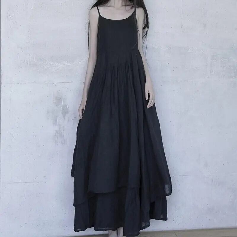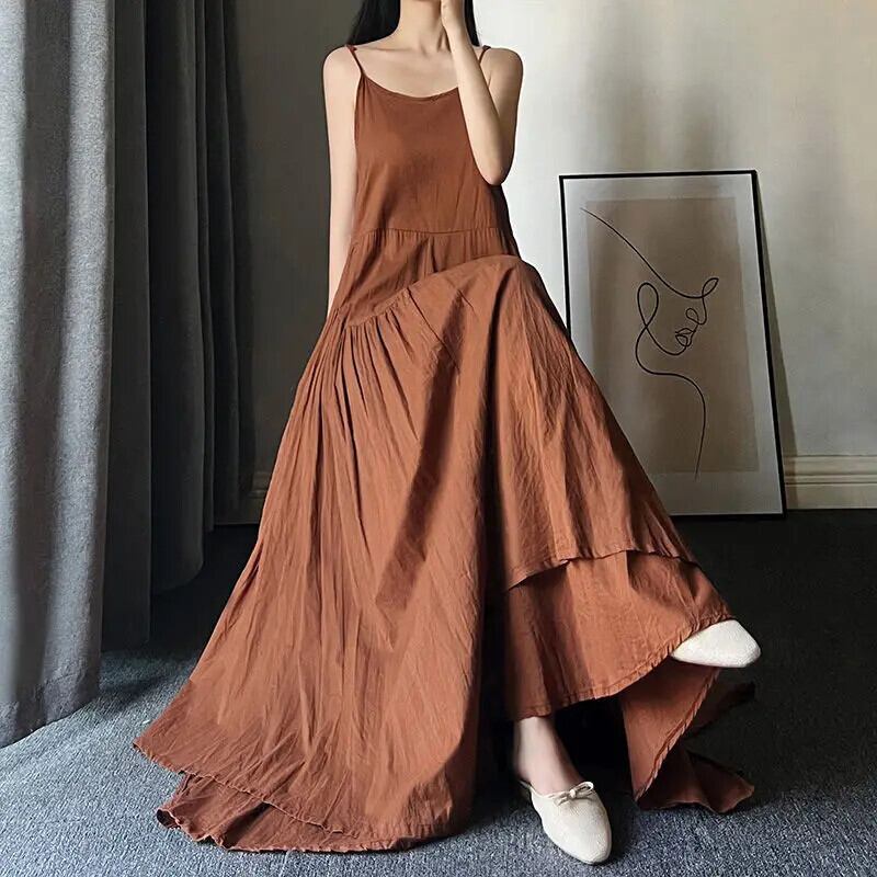 送料無料 ソリッドカラースプライシング非対称スリップドレス女性の 2024 夏ルーズ不規則なノースリーブドレス サマー 夏物 AE1288776678717494035