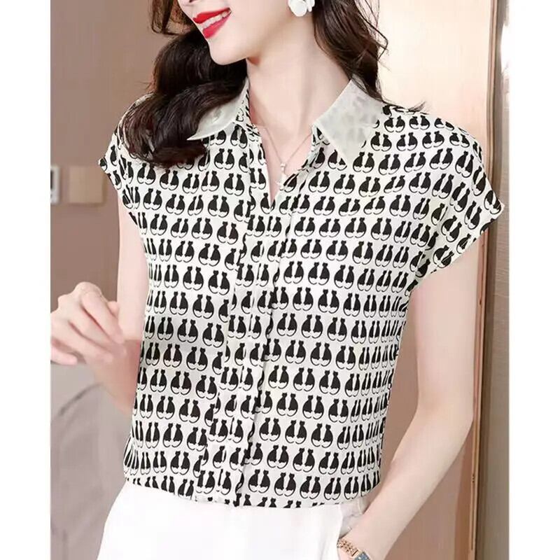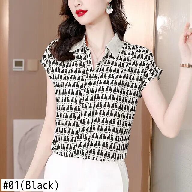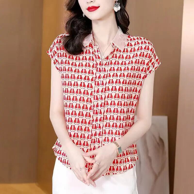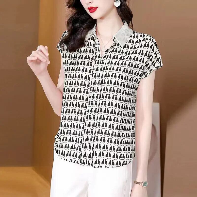 送料無料 V ネックスプライス半袖プリントブラウス女性の 2024 夏特大プルオーバーオフィスレディシャツ ショート ハーフスリーブ サマー 夏物 Vネック 会社 学校 通勤や通学にも AE1288776639778372831