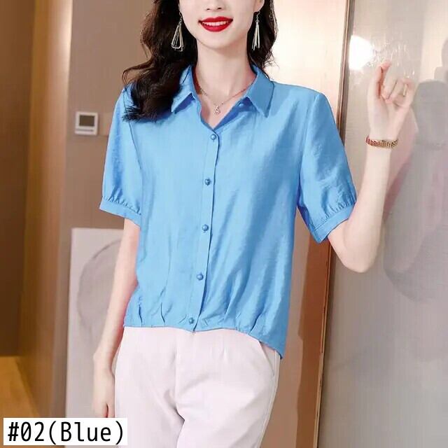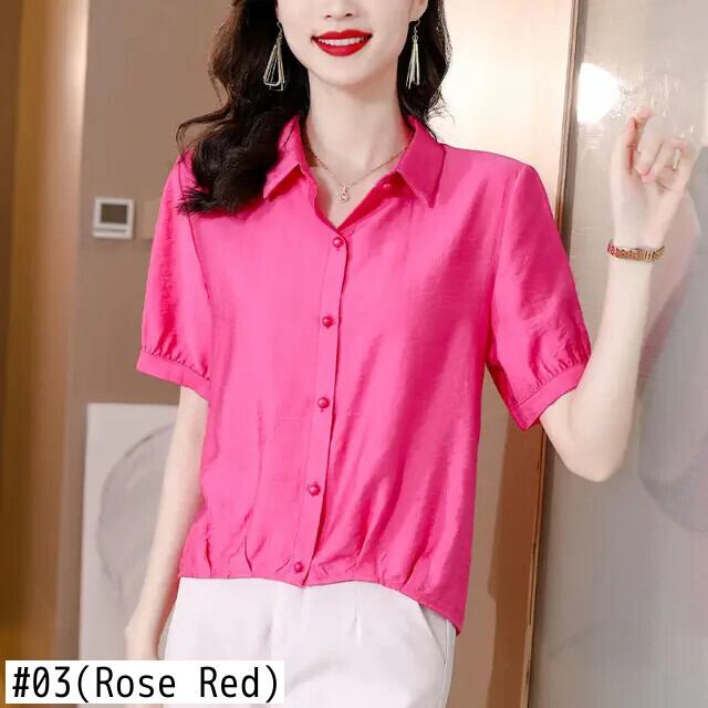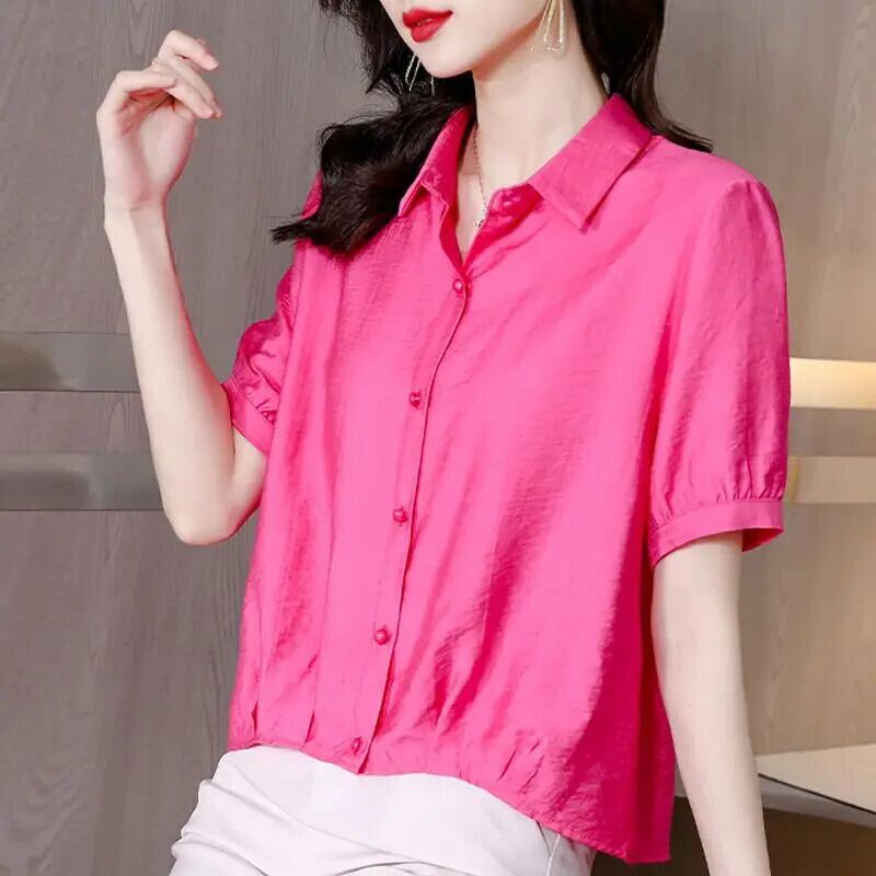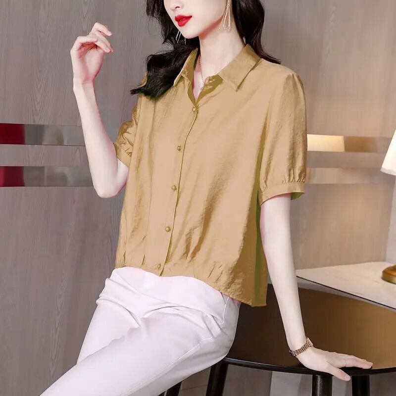 送料無料 ラペル半袖折り不規則なシャツの女性の 2024 夏特大プルオーバールーズスイートブラウス ショート ハーフスリーブ 大人ガーリー スウィート キュート カジュアル サマー 夏物 AE1288776694640162056