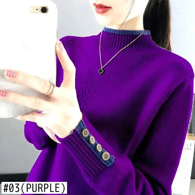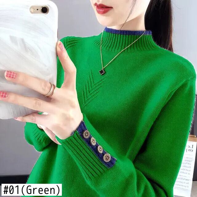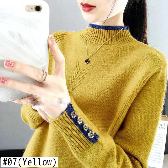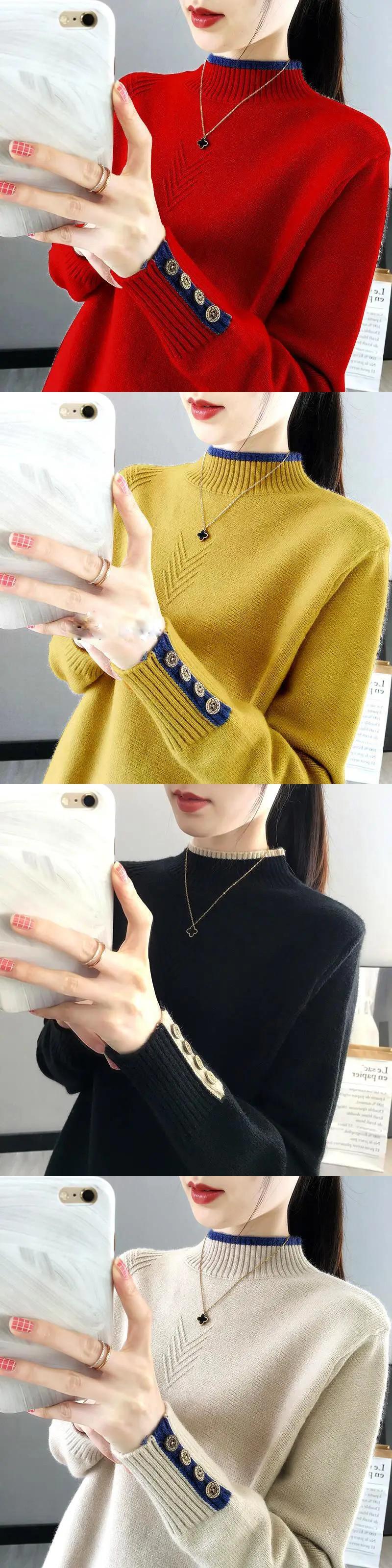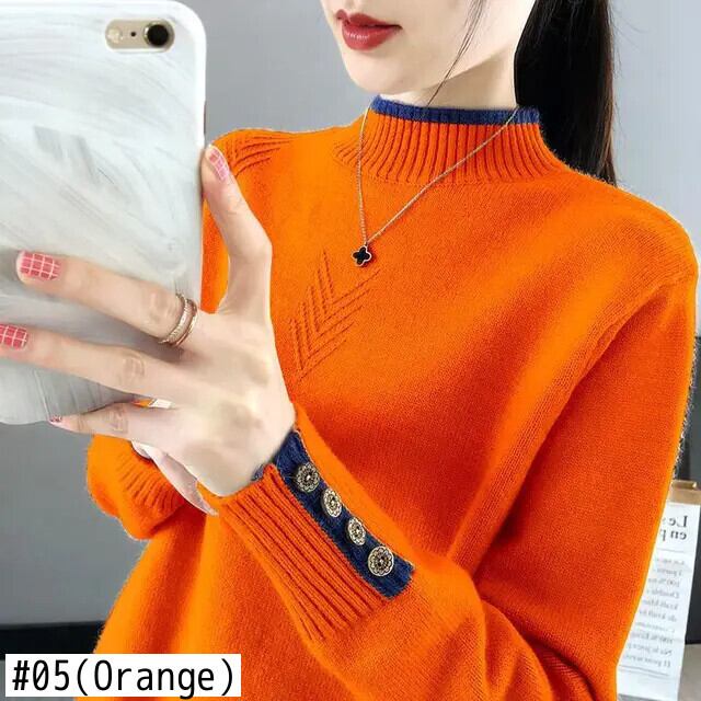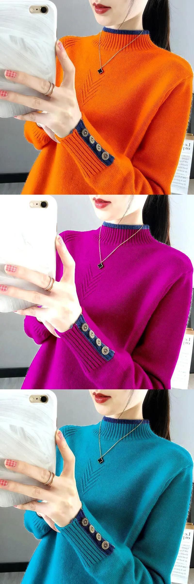 送料無料 スタンドカラースプライスボタンオールマッチセーター女性の 2023 冬ルーズニットプルオーバートップス ウィンター 冬物 AE1288776662402722971