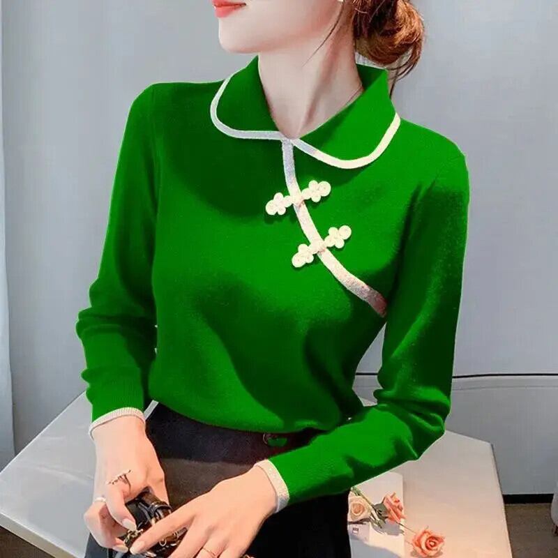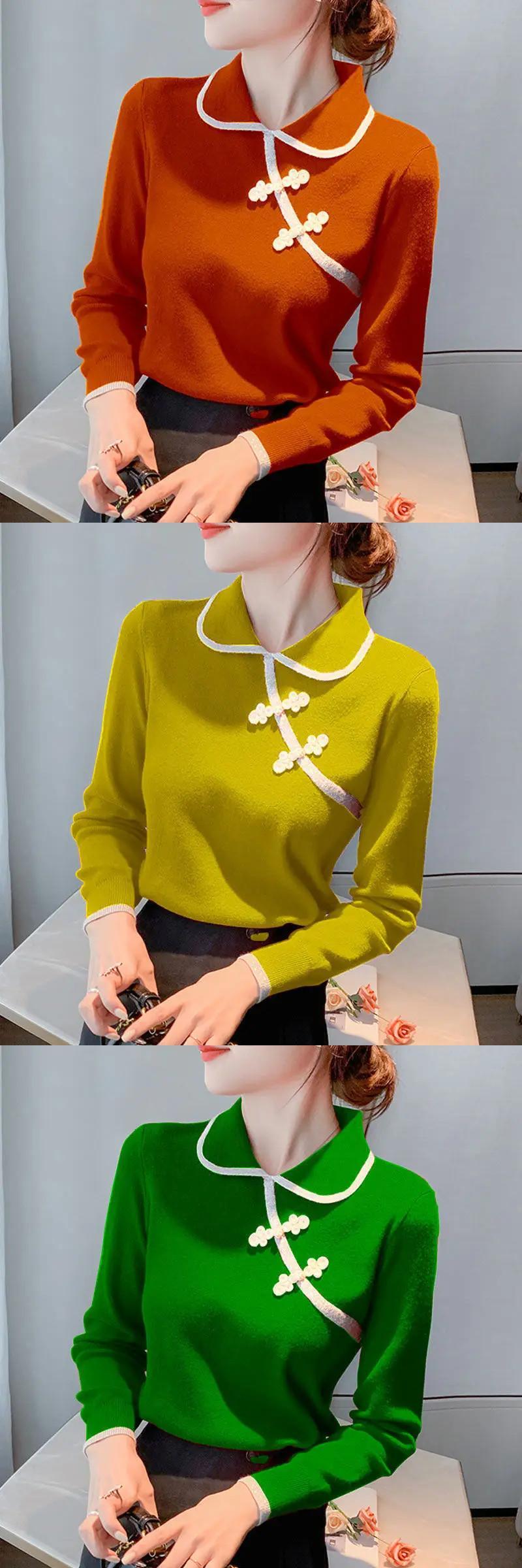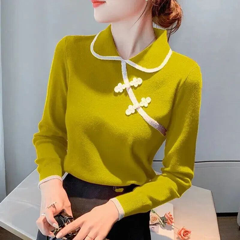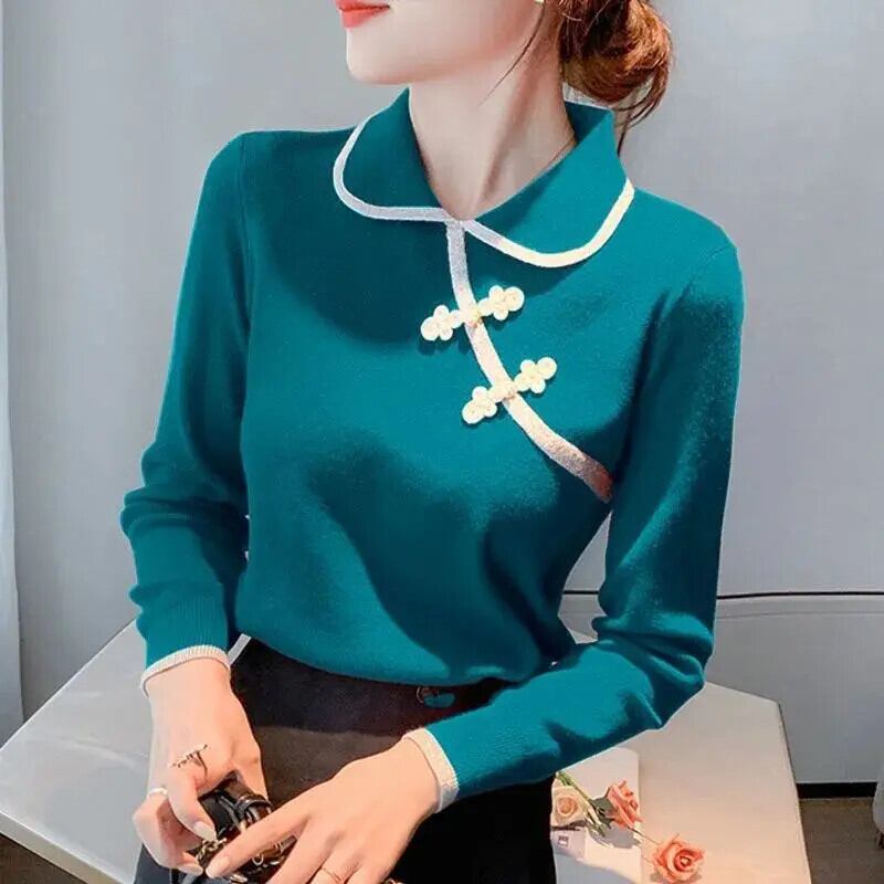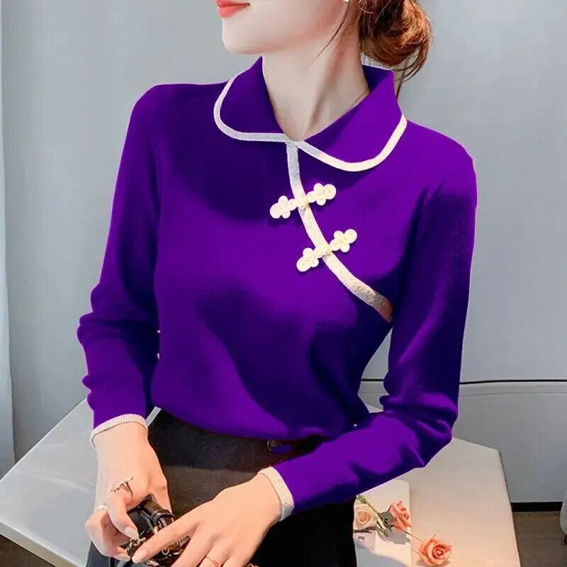 送料無料 ラペルボタンスプライシングニット非対称ブラウス女性の 2022 秋オフィスレディトップスルーズスイートシャツ 大人ガーリー スウィート キュート カジュアル オータム 秋物 会社 学校 通勤や通学にも AE1288776664013933692