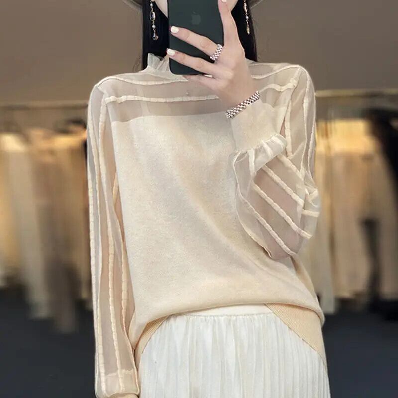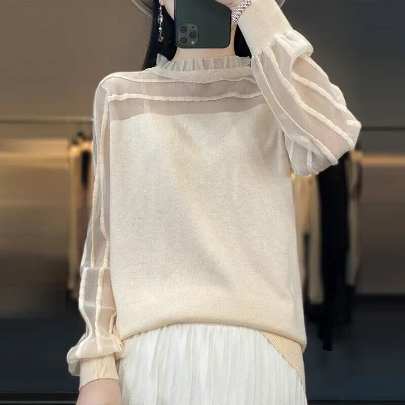 送料無料 ルーススプライシングガーゼレースフリルブラウス女性の 2023 春夏プルオーバートップスオフィスレディシャツ ラッフル スプリング 春物 サマー 夏物 会社 学校 通勤や通学にも AE1288776661514407277