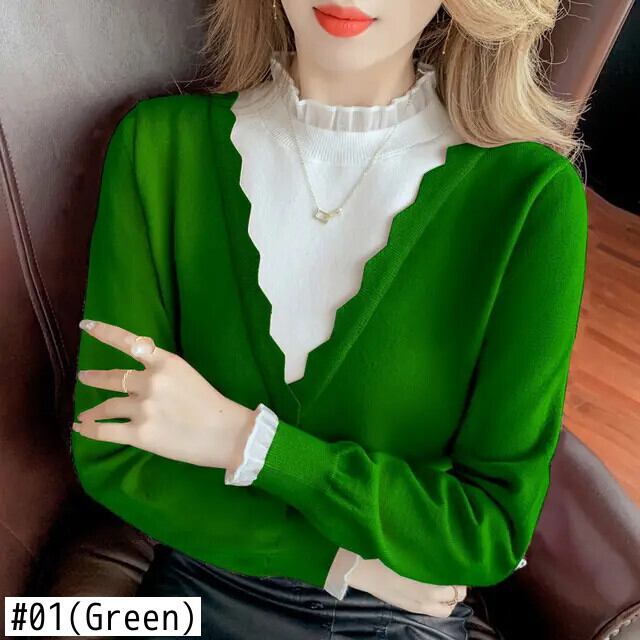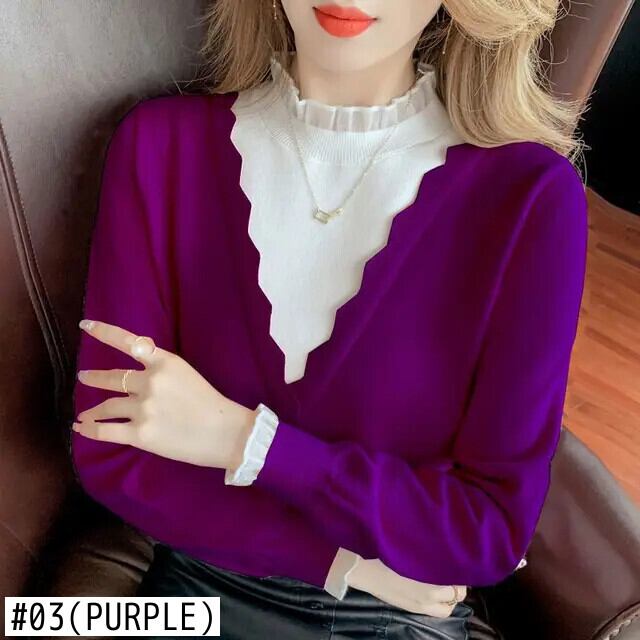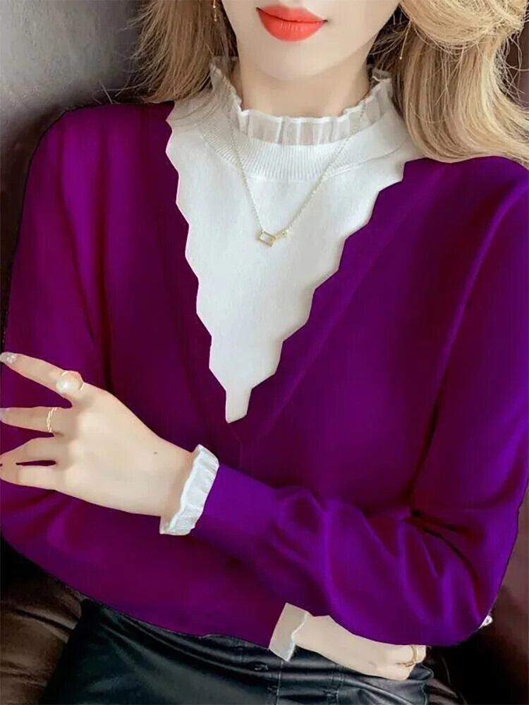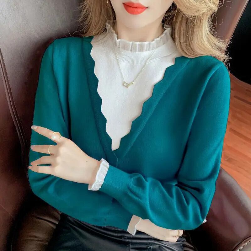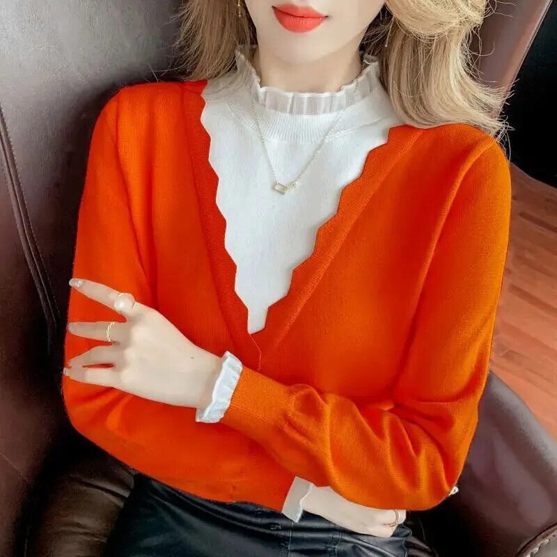 送料無料 スプライスガーゼフェイクツーピースセーター女性の 2023 秋冬ルーズプルオーバーオールマッチトップス オータム 秋物 ウィンター 冬物 AE1288776675708041928