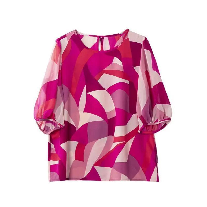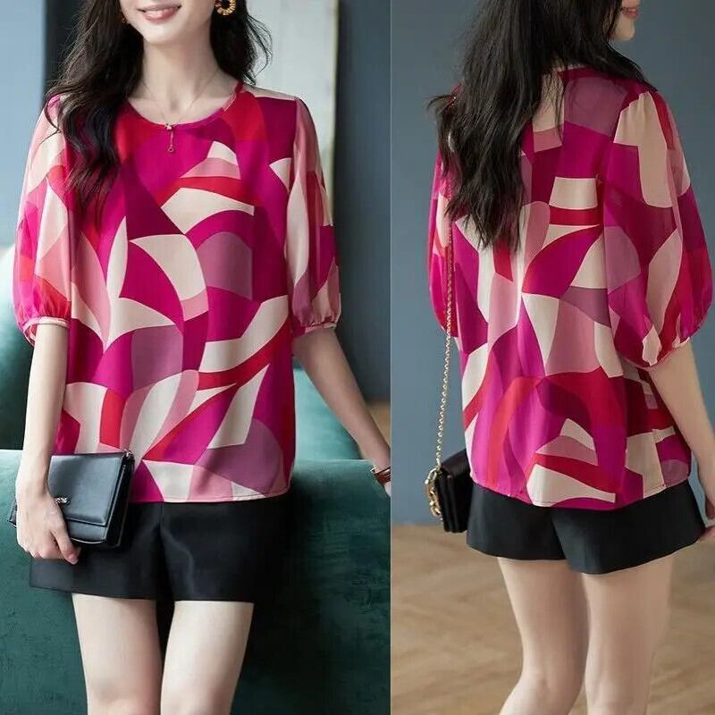 送料無料 O ネックプリントランタンスリーブシフォンブラウス女性の 2024 夏ルーズオールマッチトップスオフィスレディシャツ サマー 夏物 Oネック 会社 学校 通勤や通学にも AE1288776691515984575