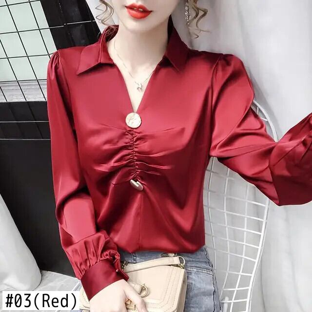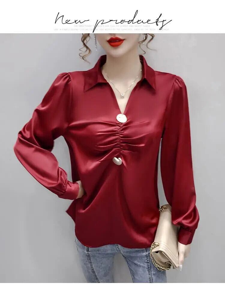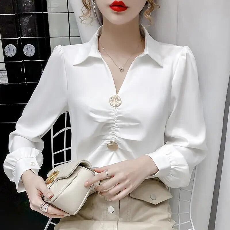 送料無料 V ネック トップス 2024 春ランタン スリーブ女性のシックな折り目イングランド シャツ ラペル ストレート プルオーバー ランタンスリーブ スプリング 春物 Vネック ヨーロピアン AE1288776671087743560
