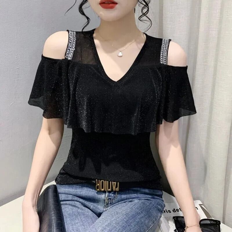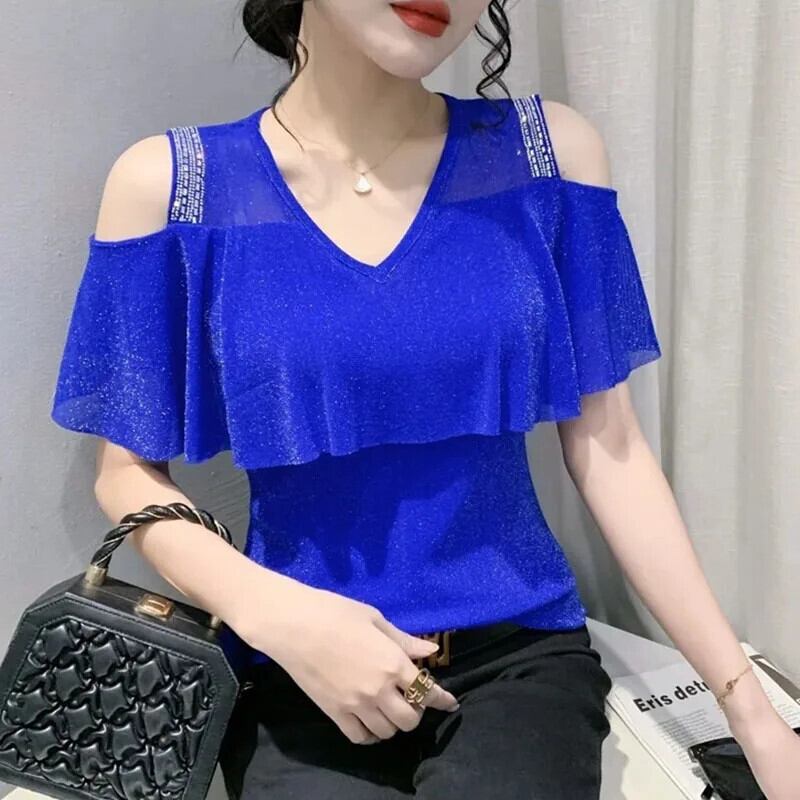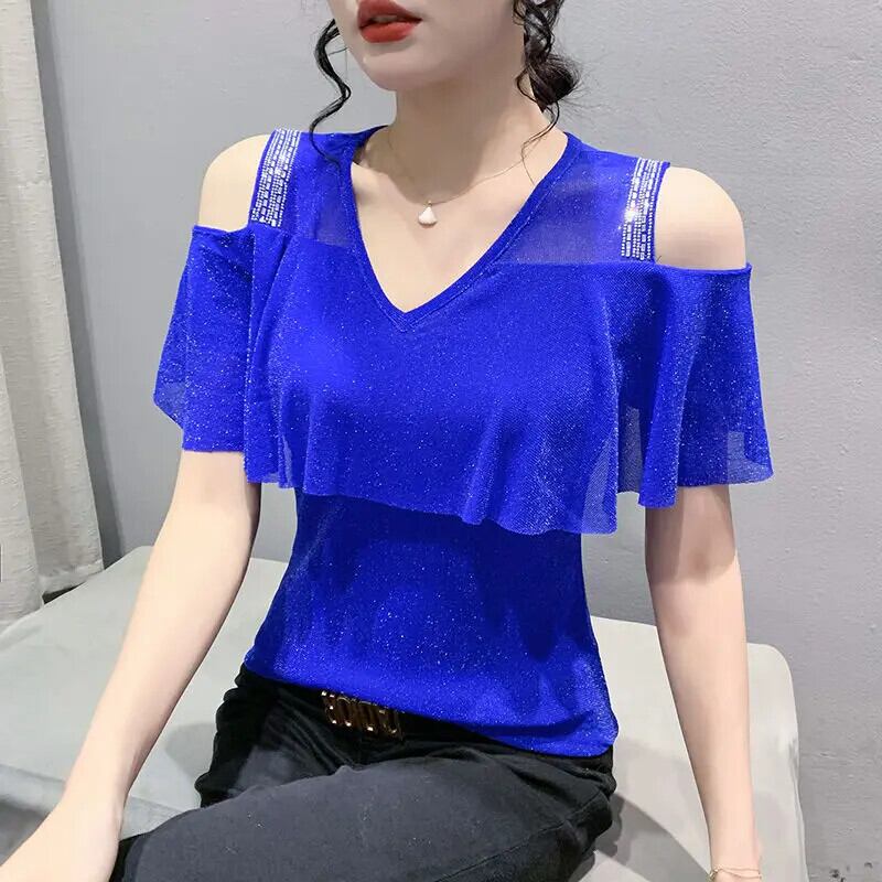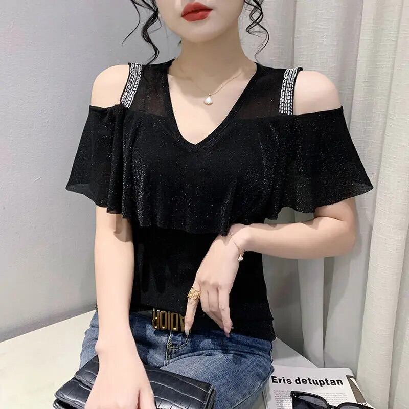 送料無料 中空ダイヤモンド明るいシルクオフショルダーブラウス女性 2024 夏特大トップス甘いシャツ 大人ガーリー スウィート キュート カジュアル サマー 夏物 AE1288776691321331381