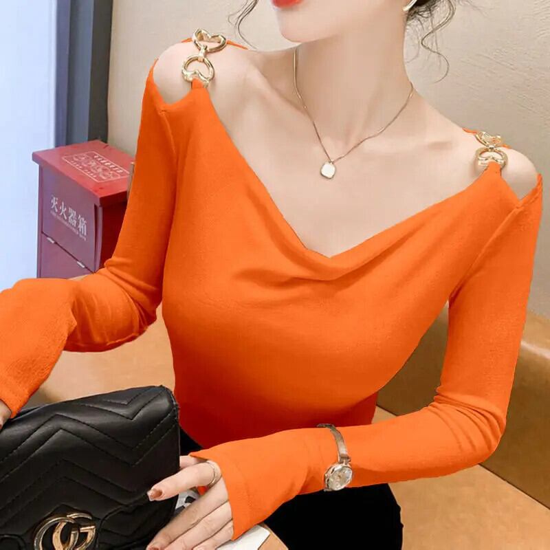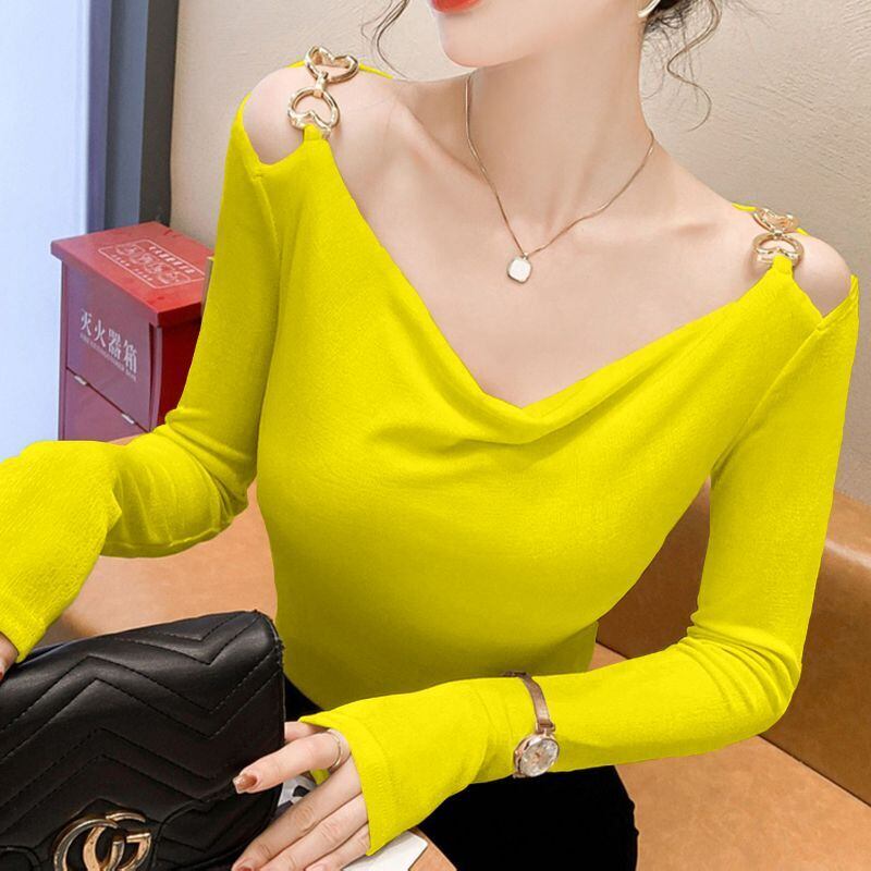 送料無料 V ネックボタン中空アウトオフショルダーブラウス女性の 2023 秋特大プルオーバー甘いシャツ 大人ガーリー スウィート キュート カジュアル オータム 秋物 Vネック AE1288776624952477305